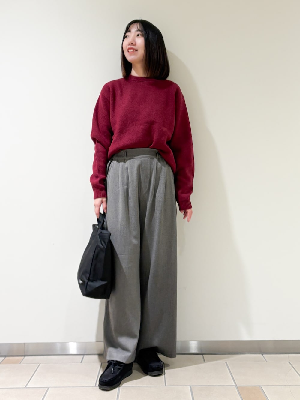 今回は綺麗めのパンツと合わせました!グレーは全体の色を中和してくれるのでとても便利ですよ◎
