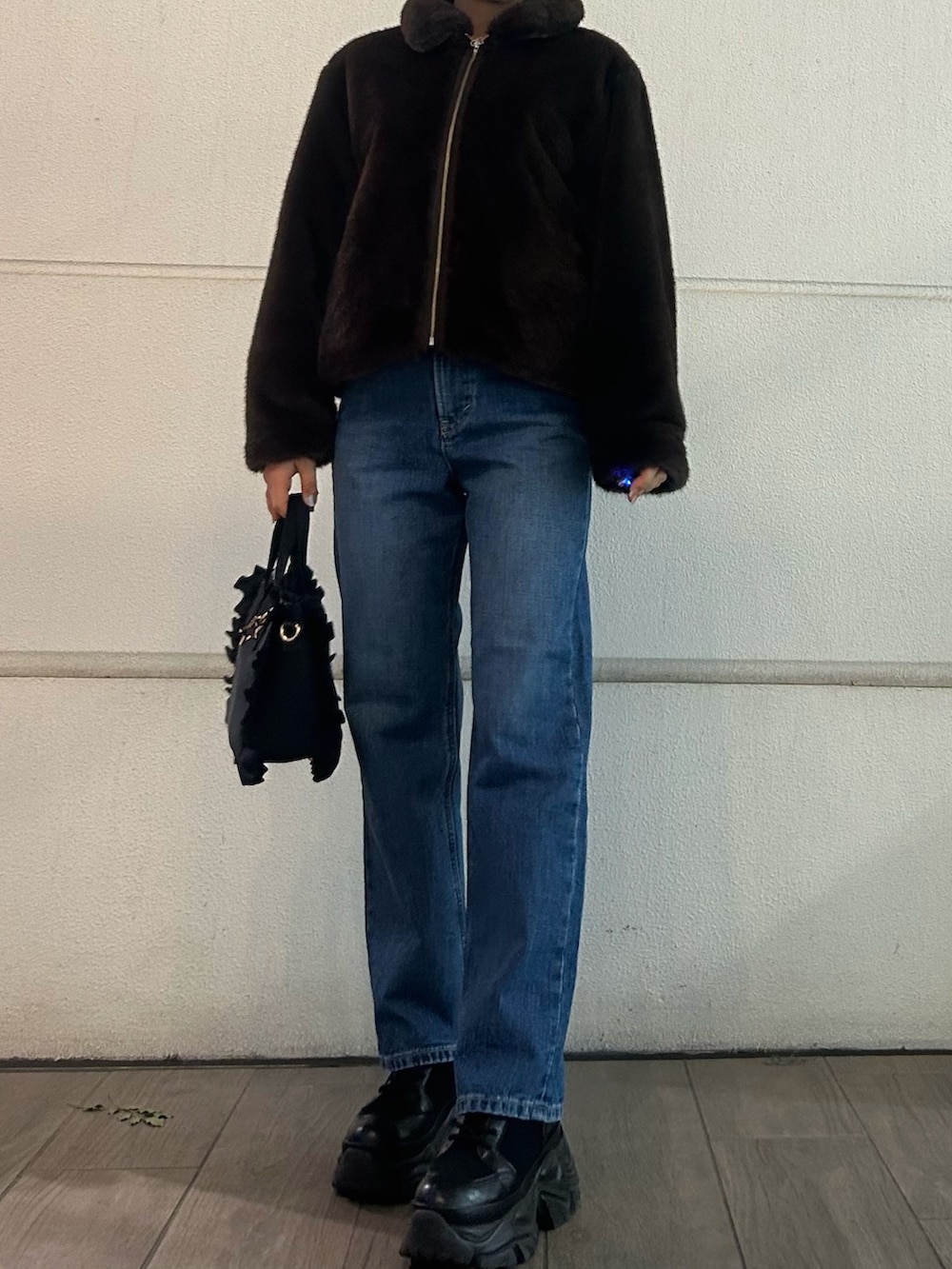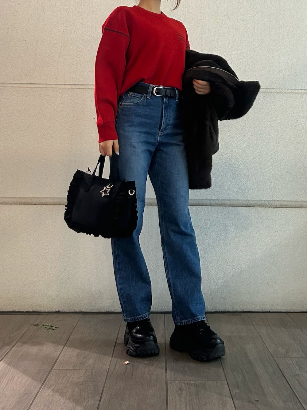 ふわふわのファージャケット×赤ニットで冬の暖かカジュアルコーデです❤️