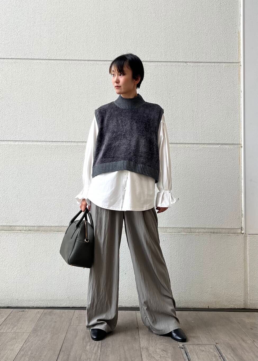 少し長め丈のパンツで足長効果です!
