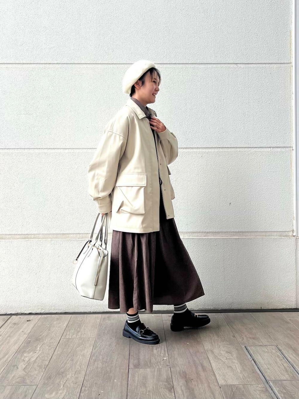 アウターは、パンツスタイルにも合わせやすいので着回ししやすいです✨