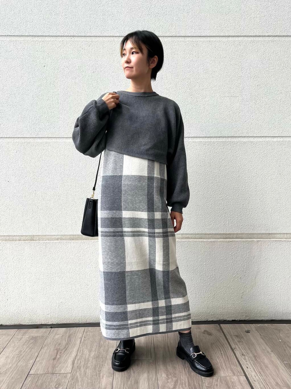 中のワンピースはノースリーブ になっているので、下にニットを着て着回しなどもできます✨