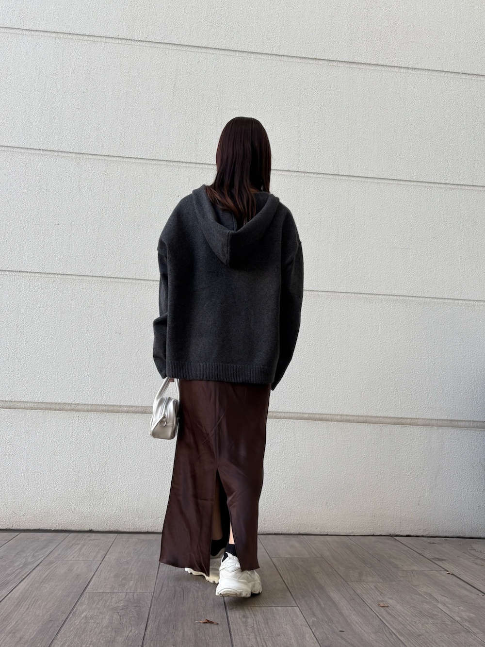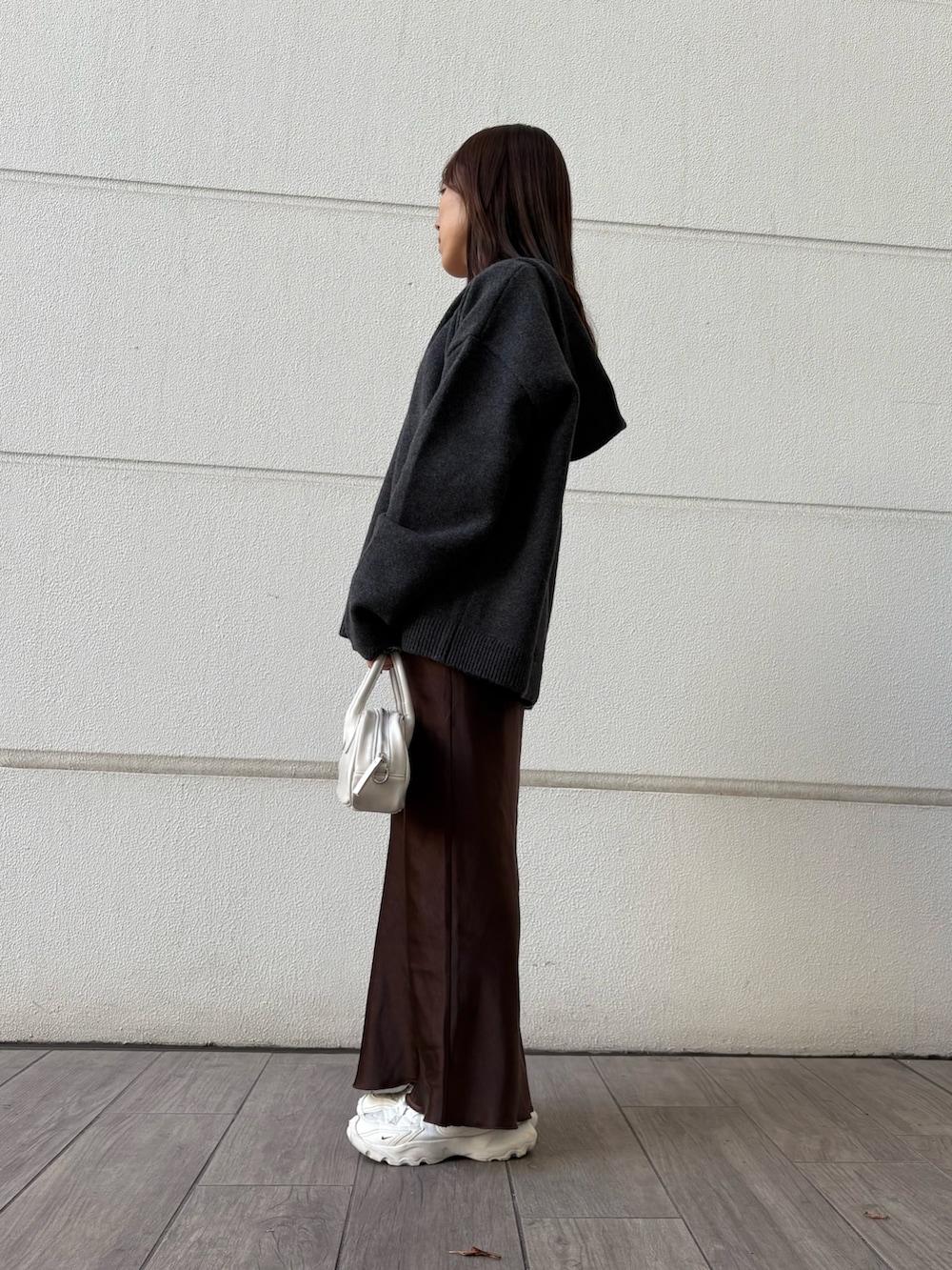 スキッパーフードニットのインナーは、ボーダーなどもオススメです☺️