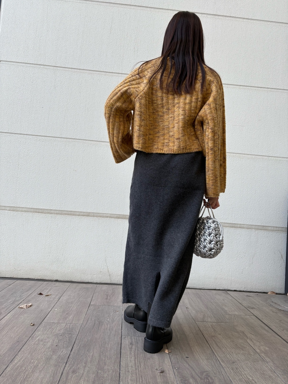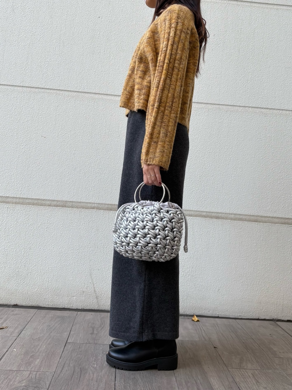シルバーのバッグがアクセントになっています🩶