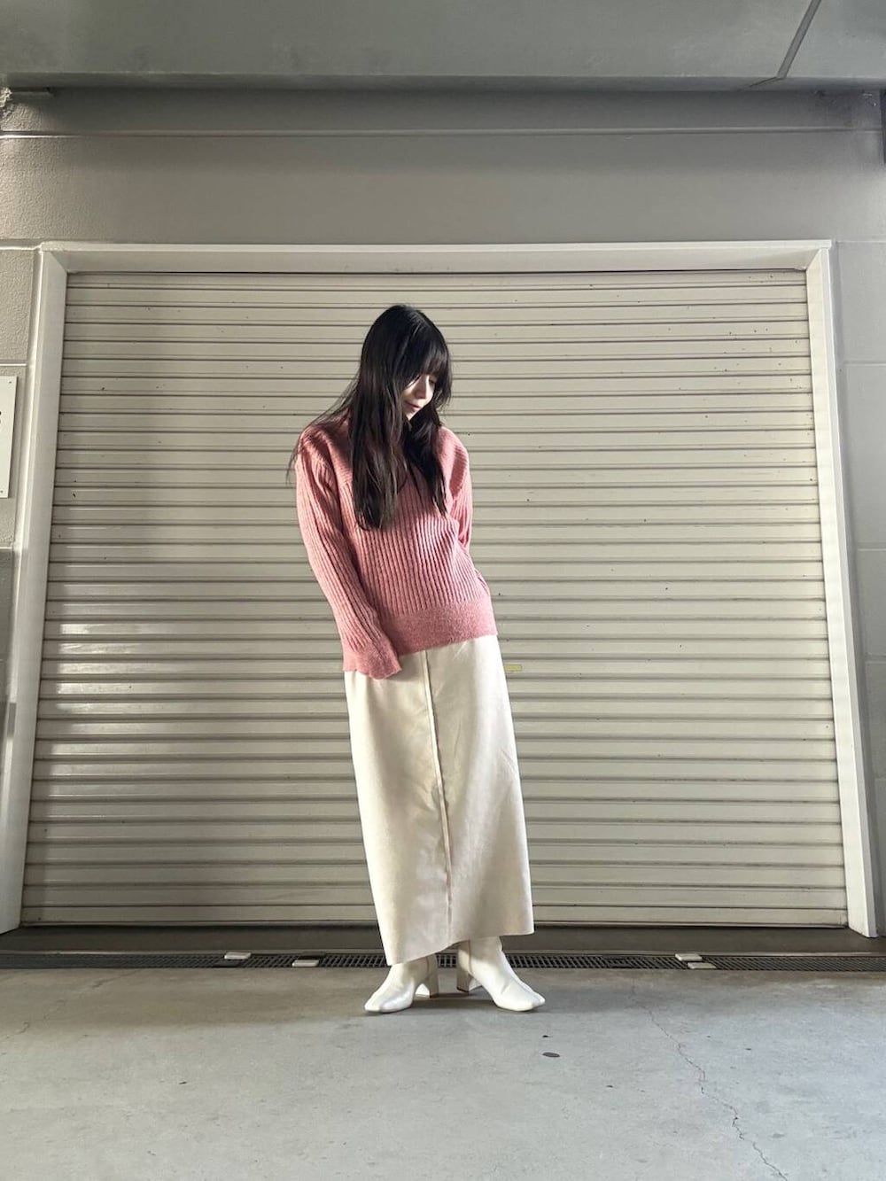 華やかなピンクのニットにタイトスカートで楽ちんカジュアルコーデにしました☺️