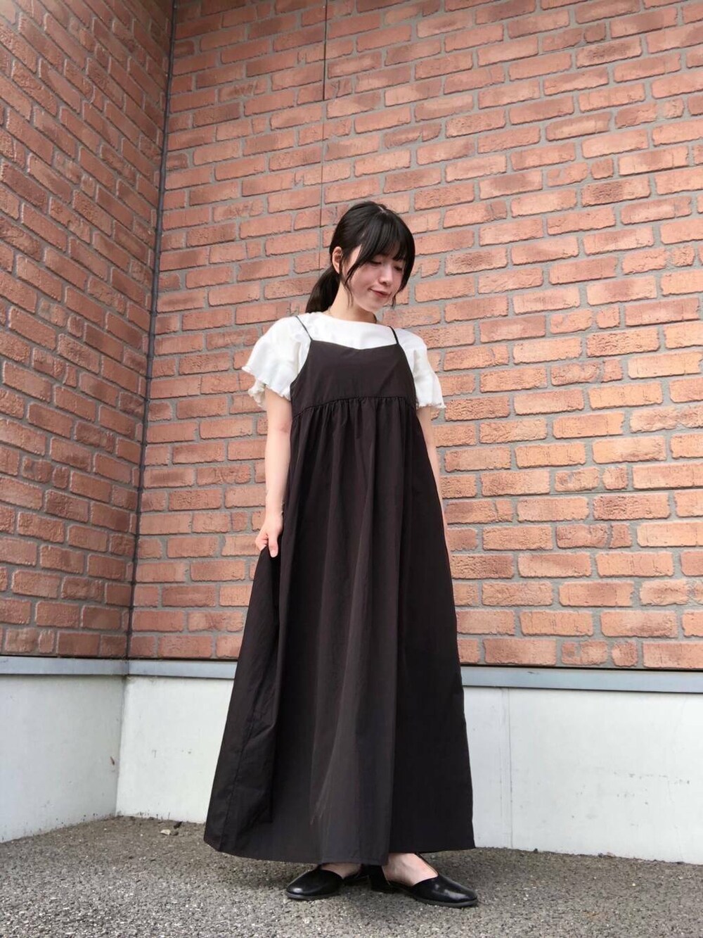 お袖のデザインが可愛いTシャツにキャミワンピースでモノトーンコーデにしました☺️
