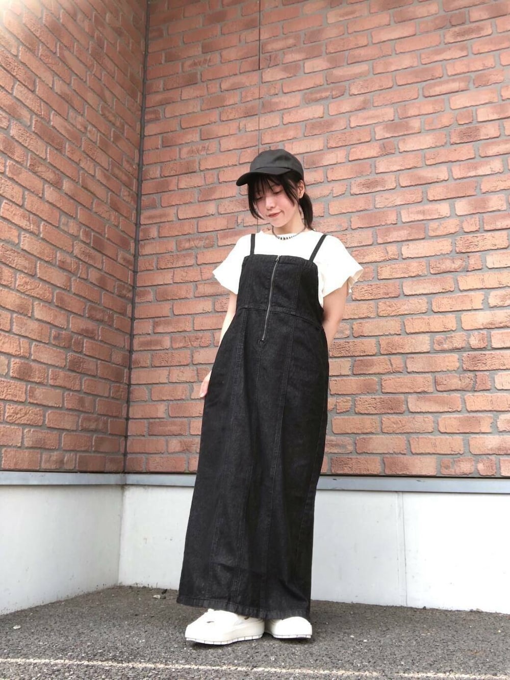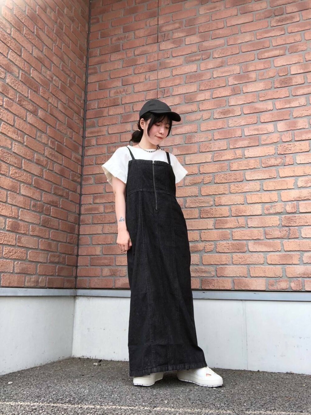 程よくタイトで細見えするデニムワンピースにオリガミタックTシャツをあわせたシンプルで可愛いお気に入りコーデです☺️