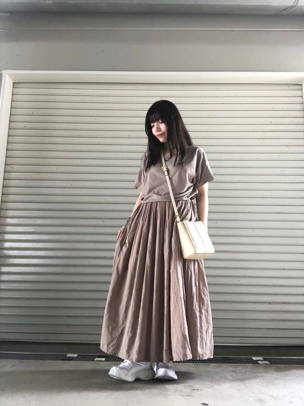 一枚でサラッと着てコーデが決まるコットンボイルドッキングギャザーワンピースは楽ちんできちんとみえするオススメアイテムです☺️