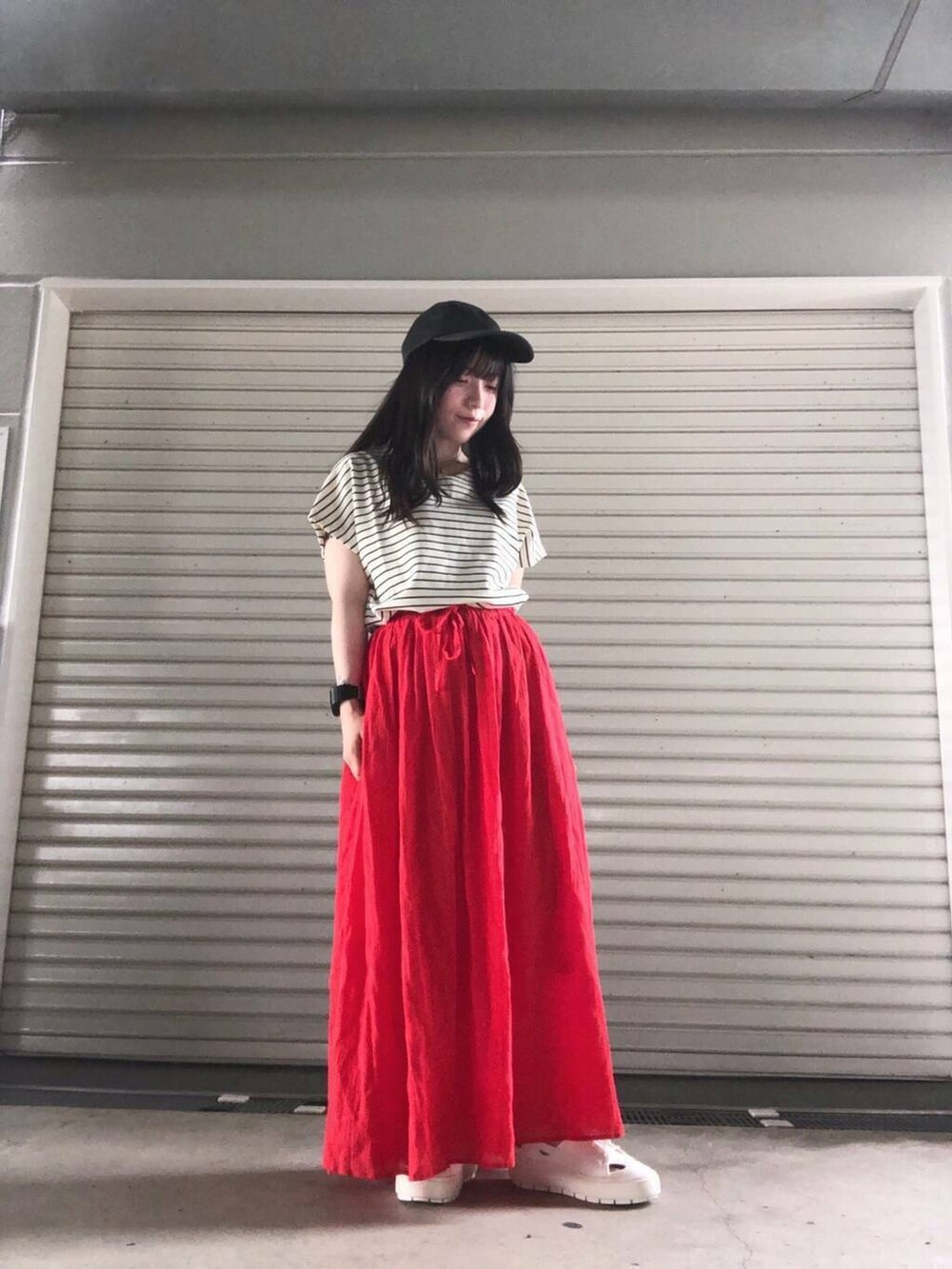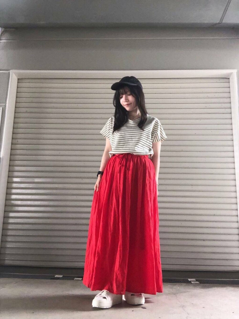 ボイルギャザースカートをあわせてラフなカジュアルコーデにしました☺️
