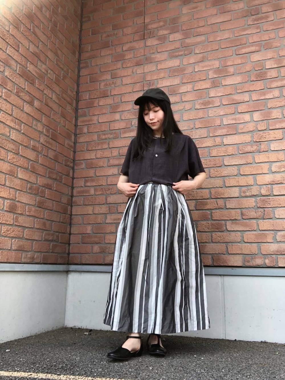 ストライプスカートをあわせて楽ちんカジュアルコーデにしました☺️
