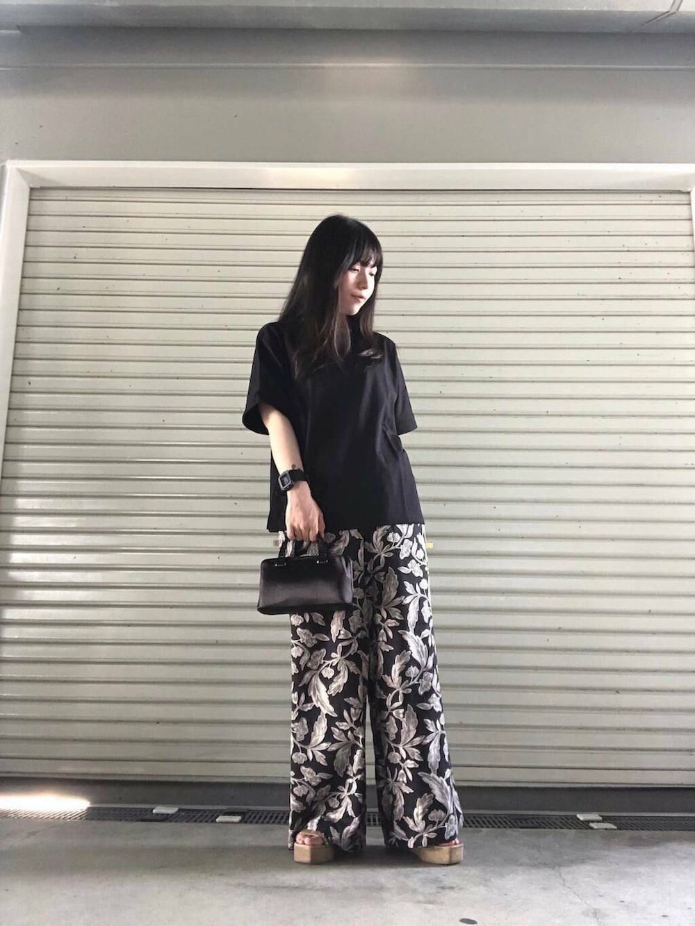 しっかりした生地感で高見えするTシャツにリネンレーヨンワイドパンツで楽ちんコーデにしました☺️