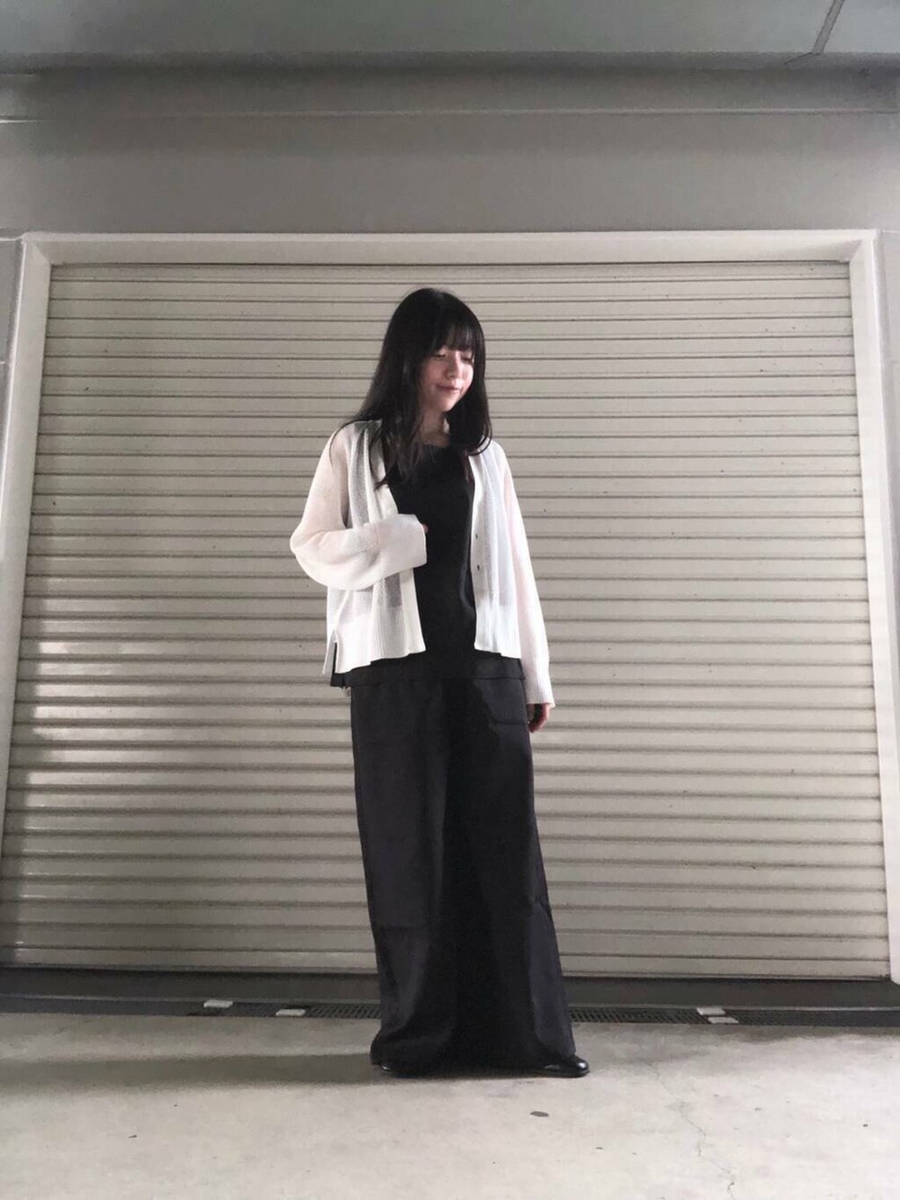 リネンライクセットアップにメッシュカーディガンでシンプルコーデにしました☺️