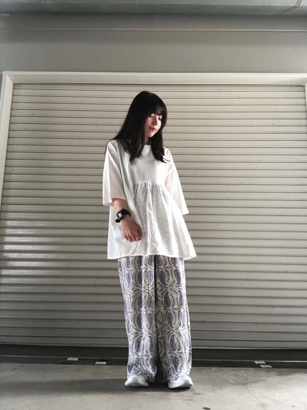 ウエストゴムで楽ちんなリネンレーヨンワイドパンツとあわせて楽ちんコーデにしました☺️