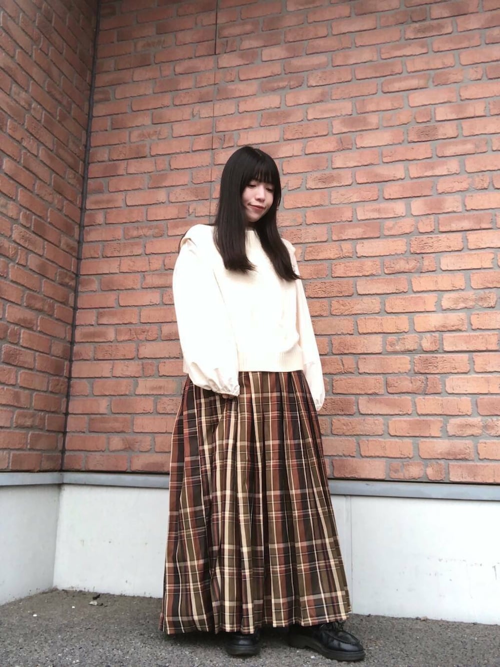 ウエストゴムで楽ちんなチェックプリーツスカートはトップスがあわせやすく着回しやすい一押しアイテムです!