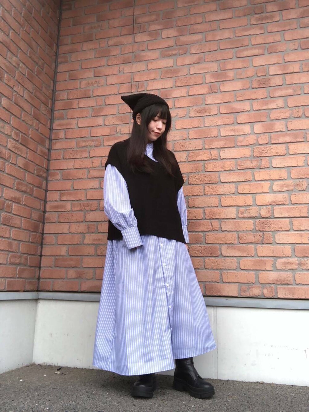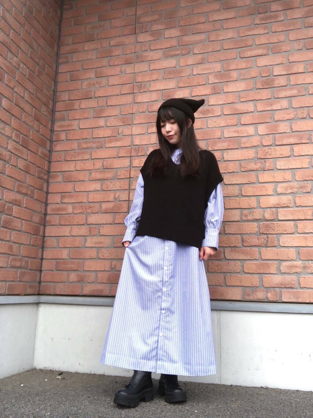今時期に使いやすいシャツワンピースにニットベストがセットなので楽ちんですぐにコーデが決まるのもオススメポイントです◎