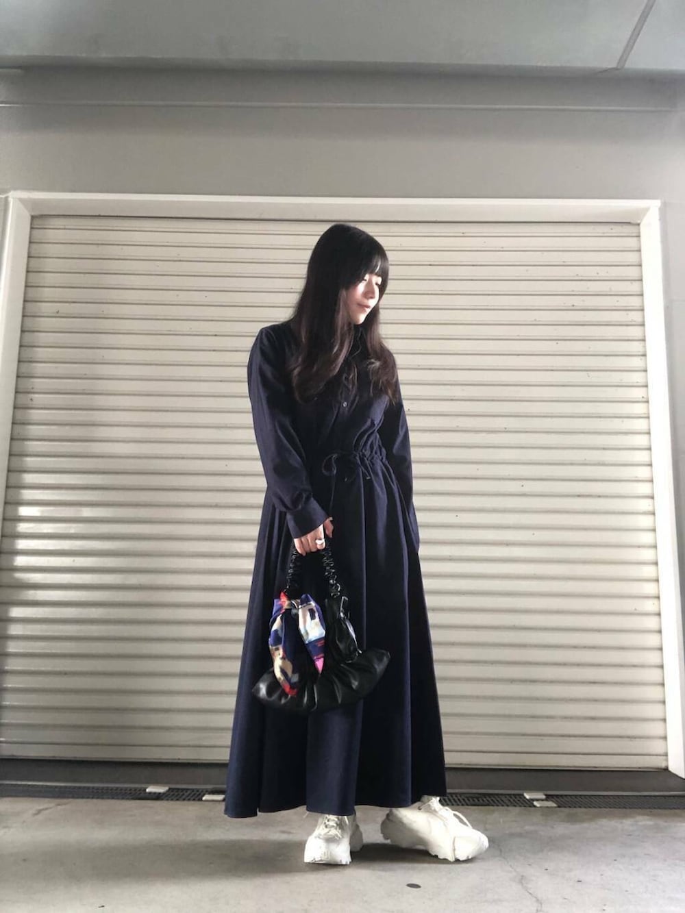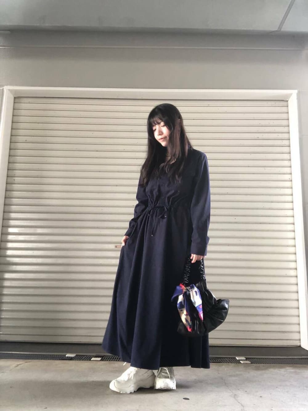 今の季節に使いやすい地厚すぎないワンピースはコーデュロイのような縦ラインに凹凸のあるピケ素材で季節感もあり◎