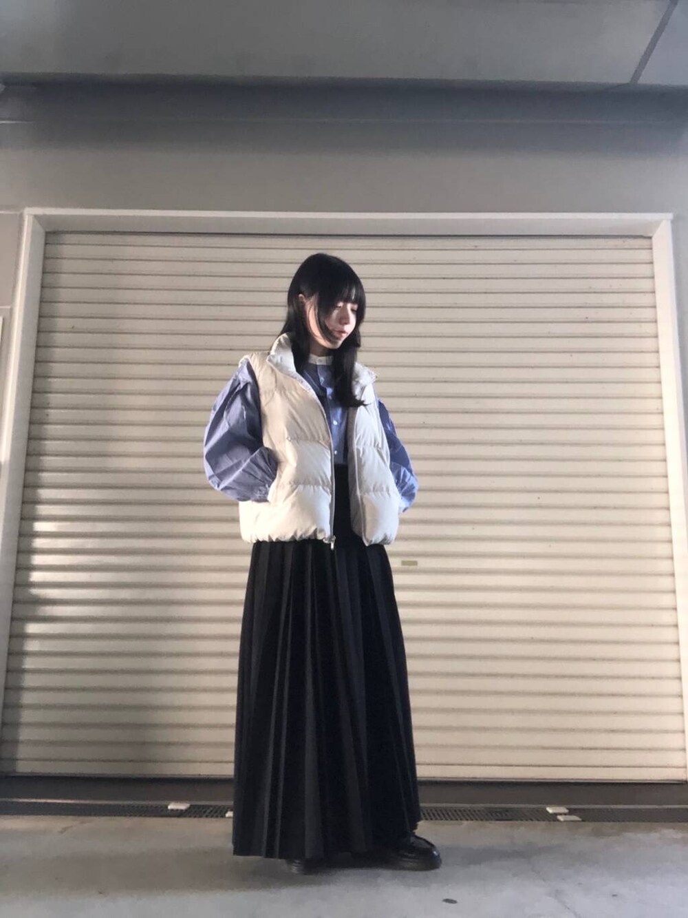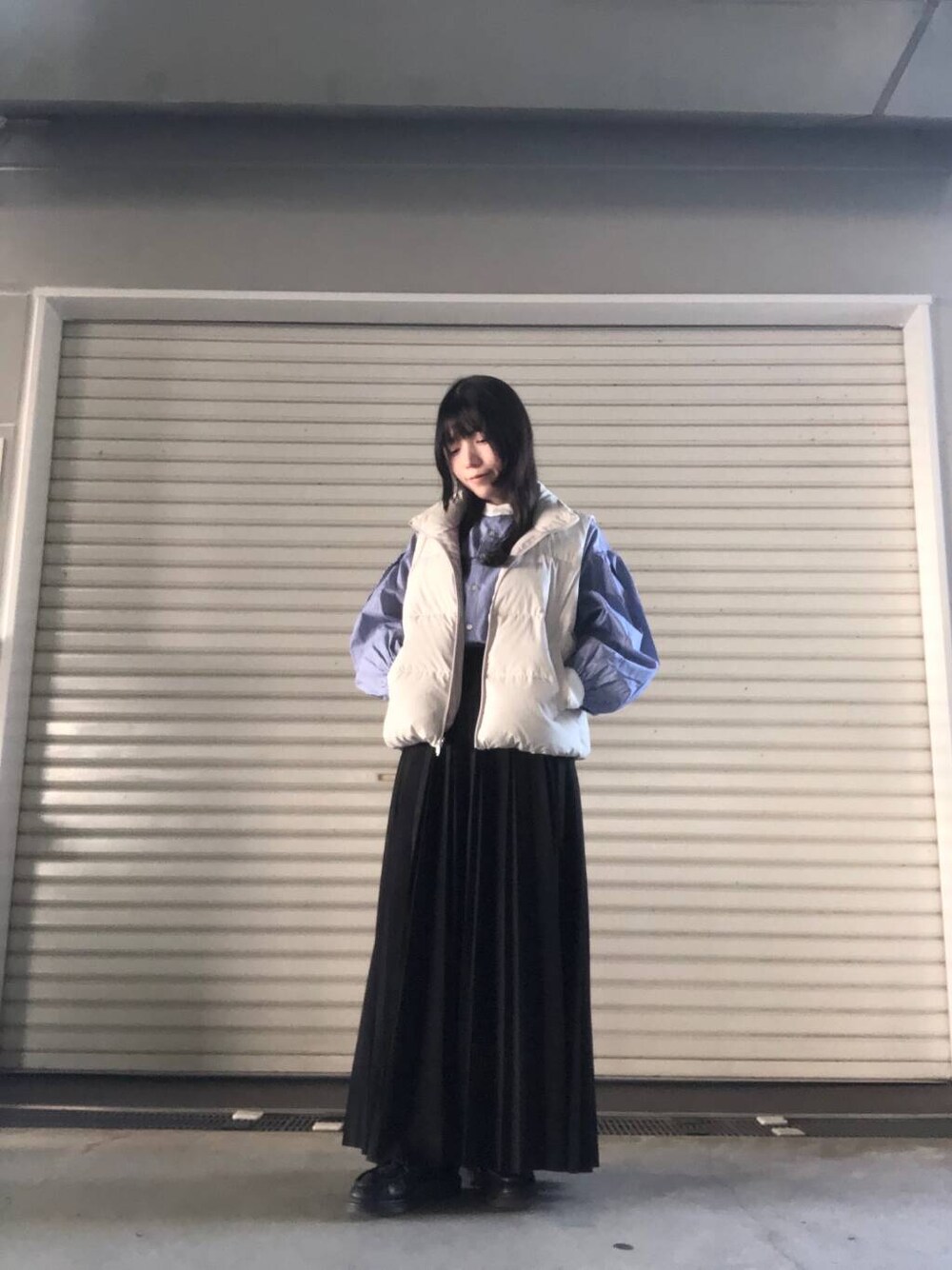 定番人気のクレリックストライプシャツにフェイクスエードプリーツスカートで楽ちんカジュアルコーデにしました☺️