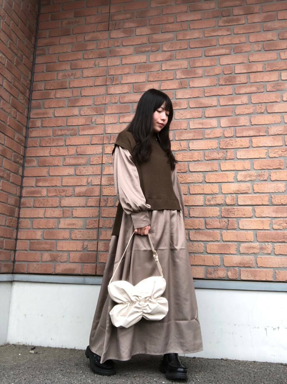 店舗でも大人気のニットベストドッキングワンピースは落ち着いたBRNカラーが秋冬らしくて可愛いです☺️