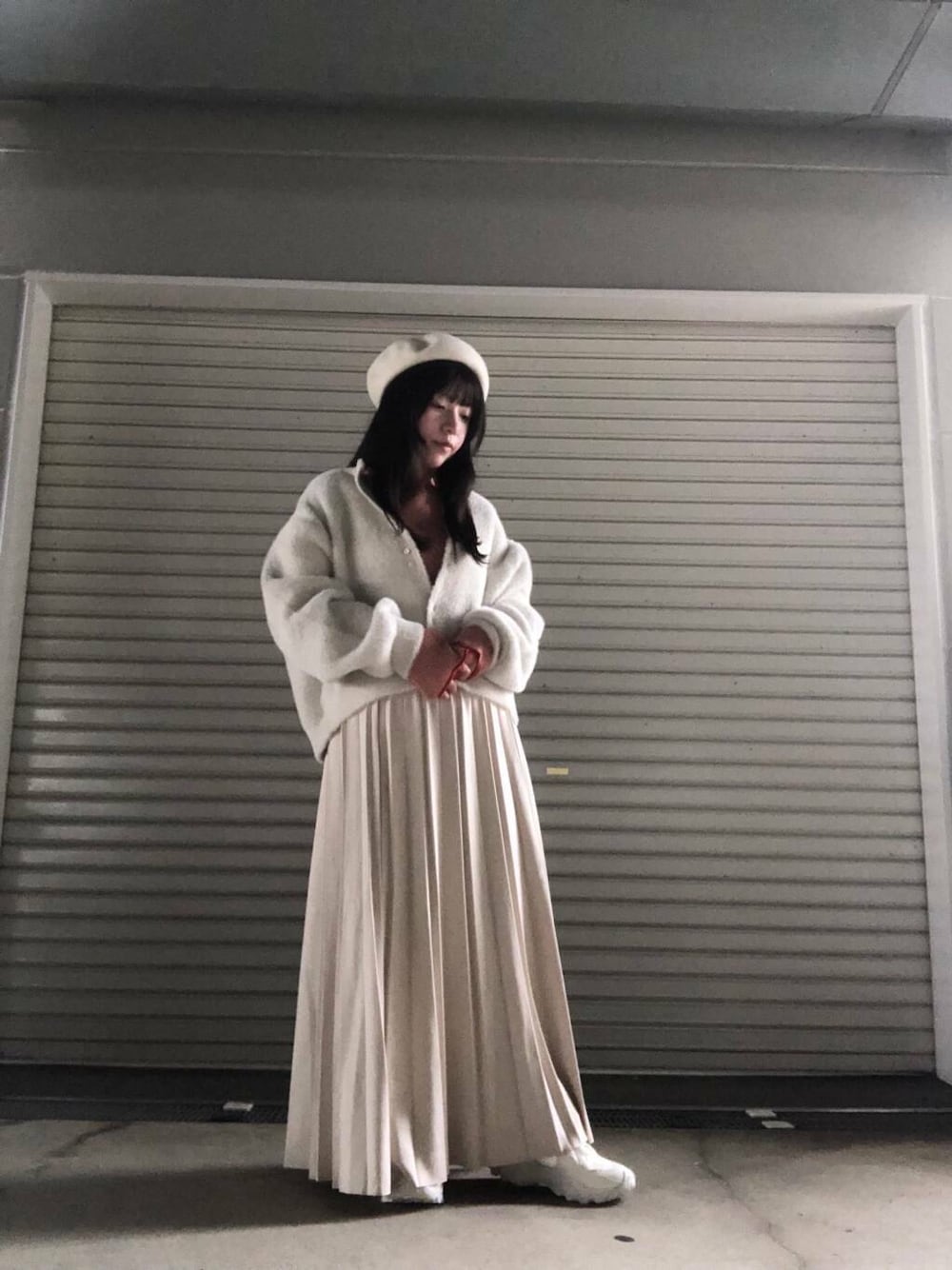 もちもちで肌触り良いカーディガンにフェイクスエードスカートで綺麗めカジュアルコーデにしました☺️