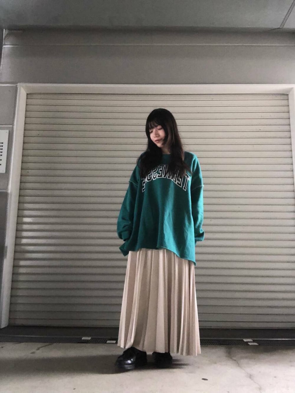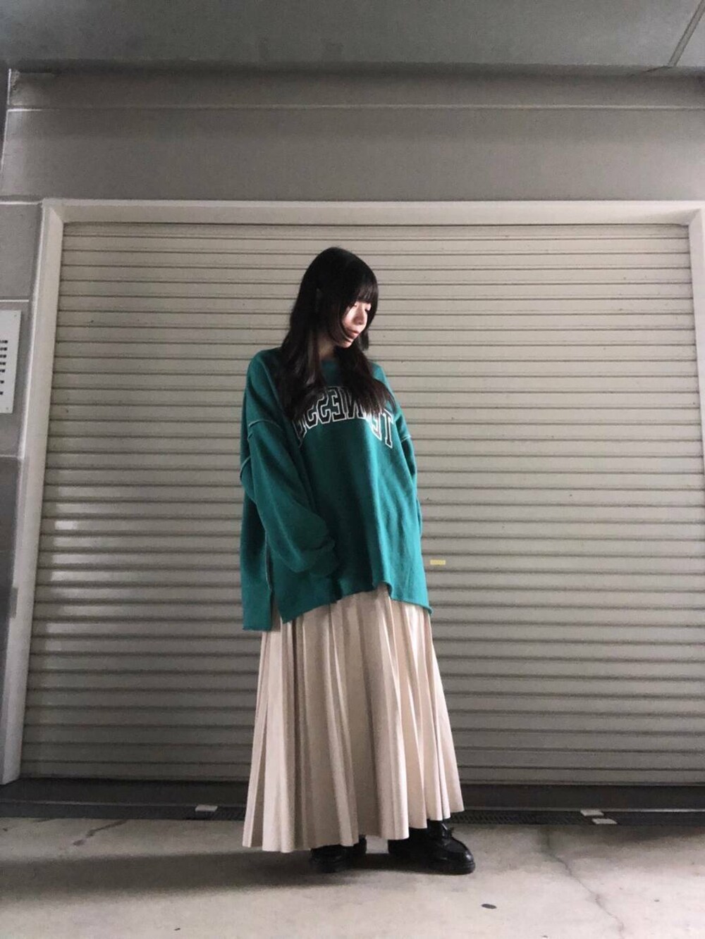 ゆったりシルエットが可愛いスウェットにフェイクスエードスカートで楽ちんカジュアルコーデにしました☺️