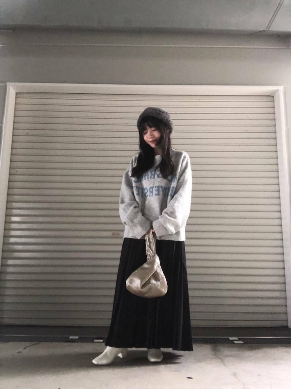 軽くて暖かくデザインが可愛いブークレビックロゴニットにフェイクスエードスカートで楽ちんカジュアルコーデにしました☺️