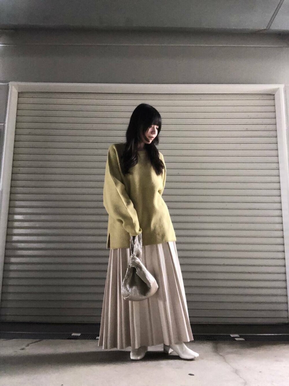 店舗でも大人気のニットは華やかな黄色で暗くなりがちな冬コーデの差し色にも◎
