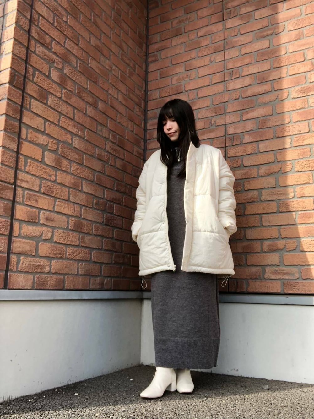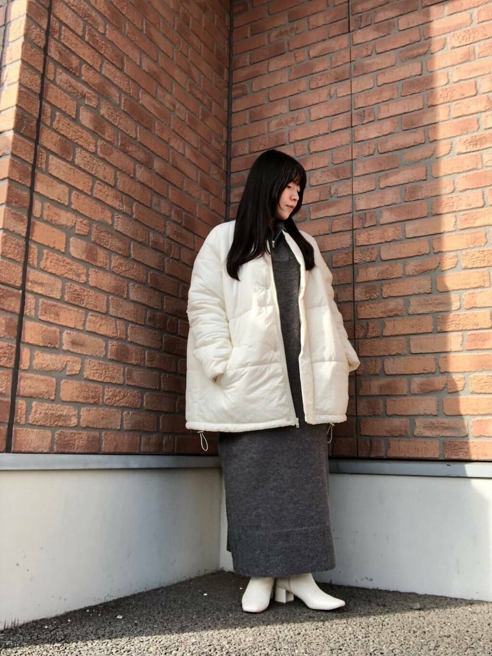 しっかり暖かい中綿キルトオーバージャケットは身幅も大きめで厚手ニットも楽々着れます☺️