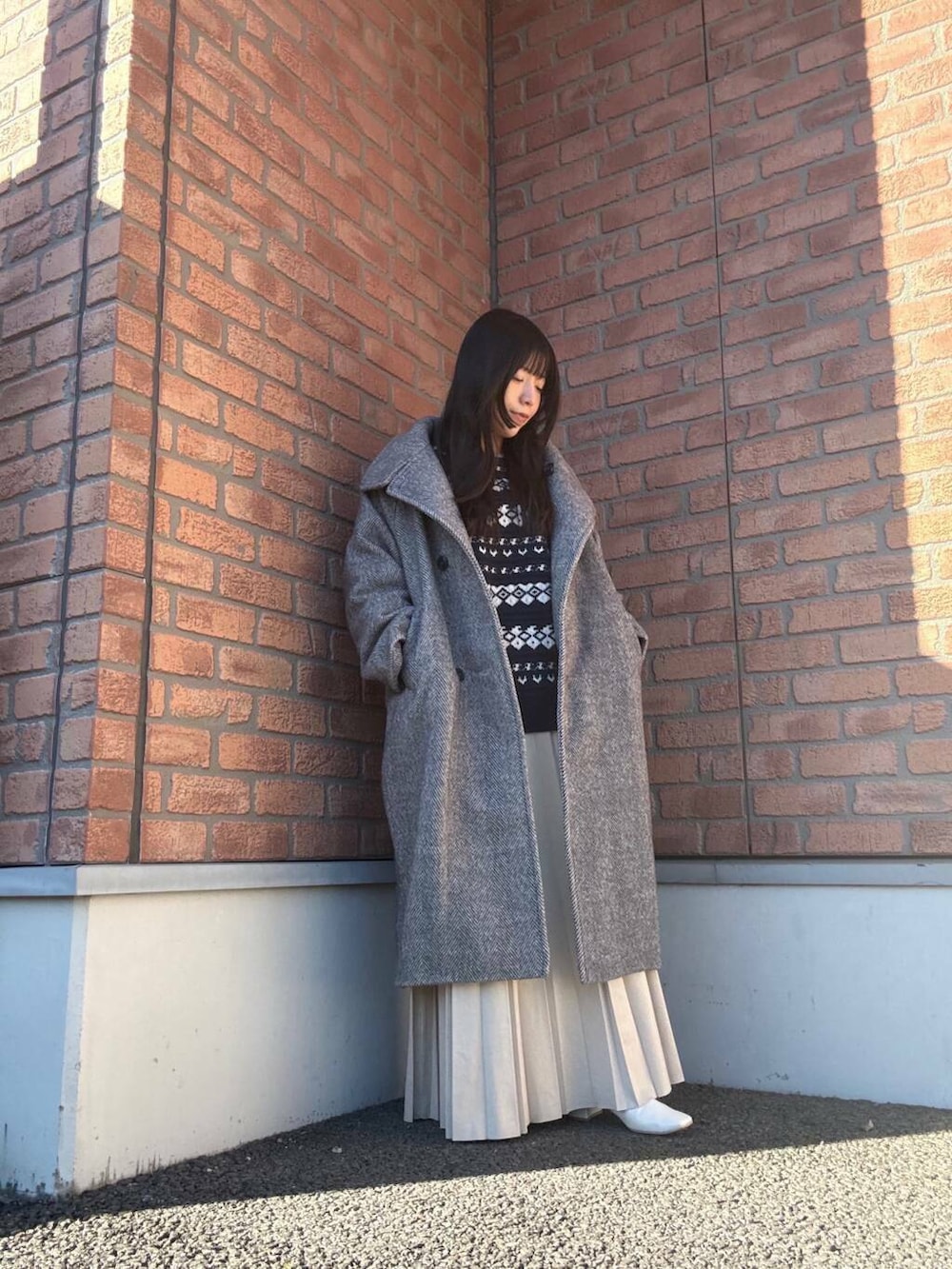 しっかりとした厚めの生地感でヘリンボーン柄がお洒落なロングコートはホリデーシーズンにもオススメです☺️