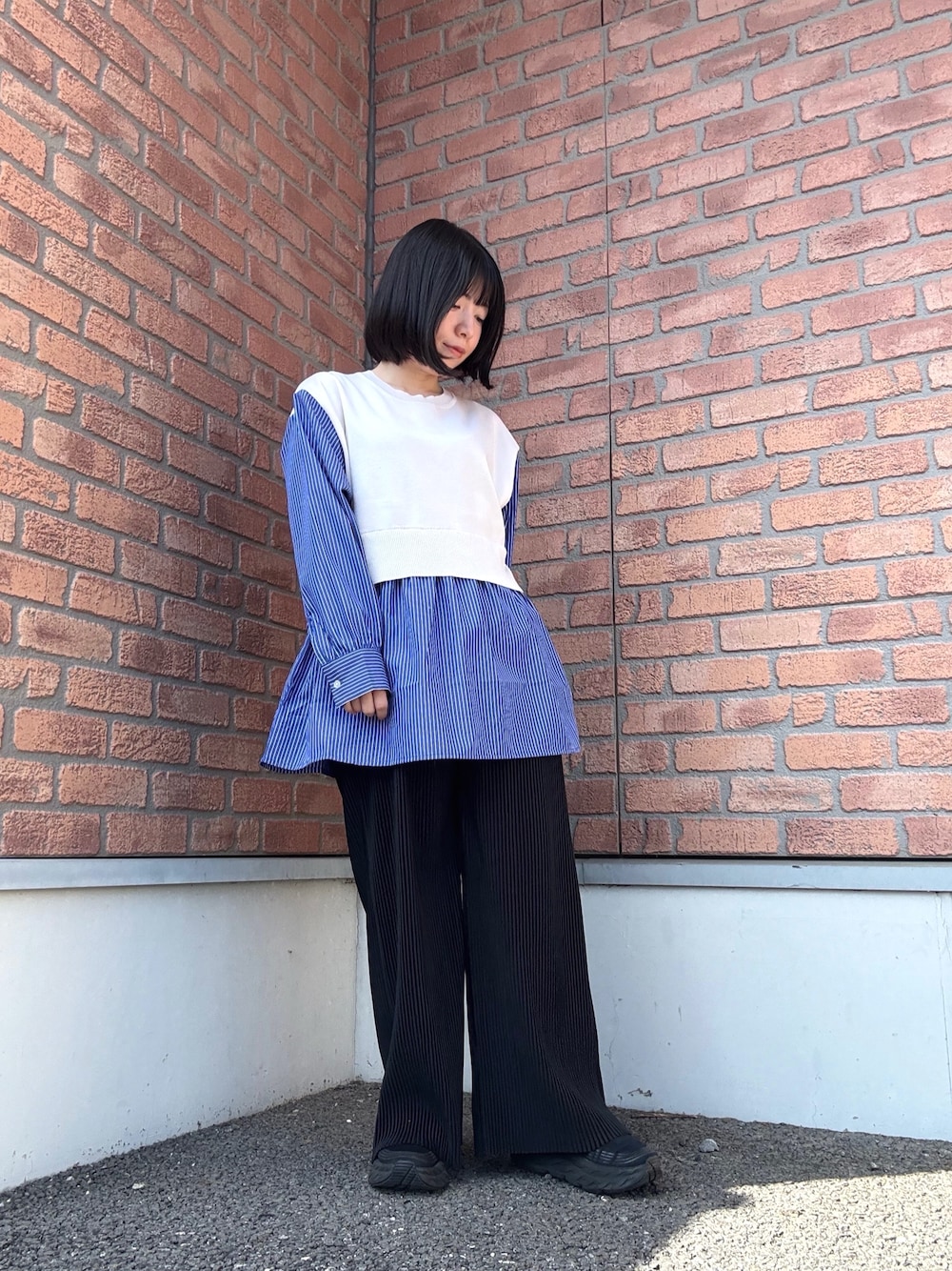 ウエストゴムで楽ちんシャーリングパンツは程よくゆったりシルエットで着心地も◎