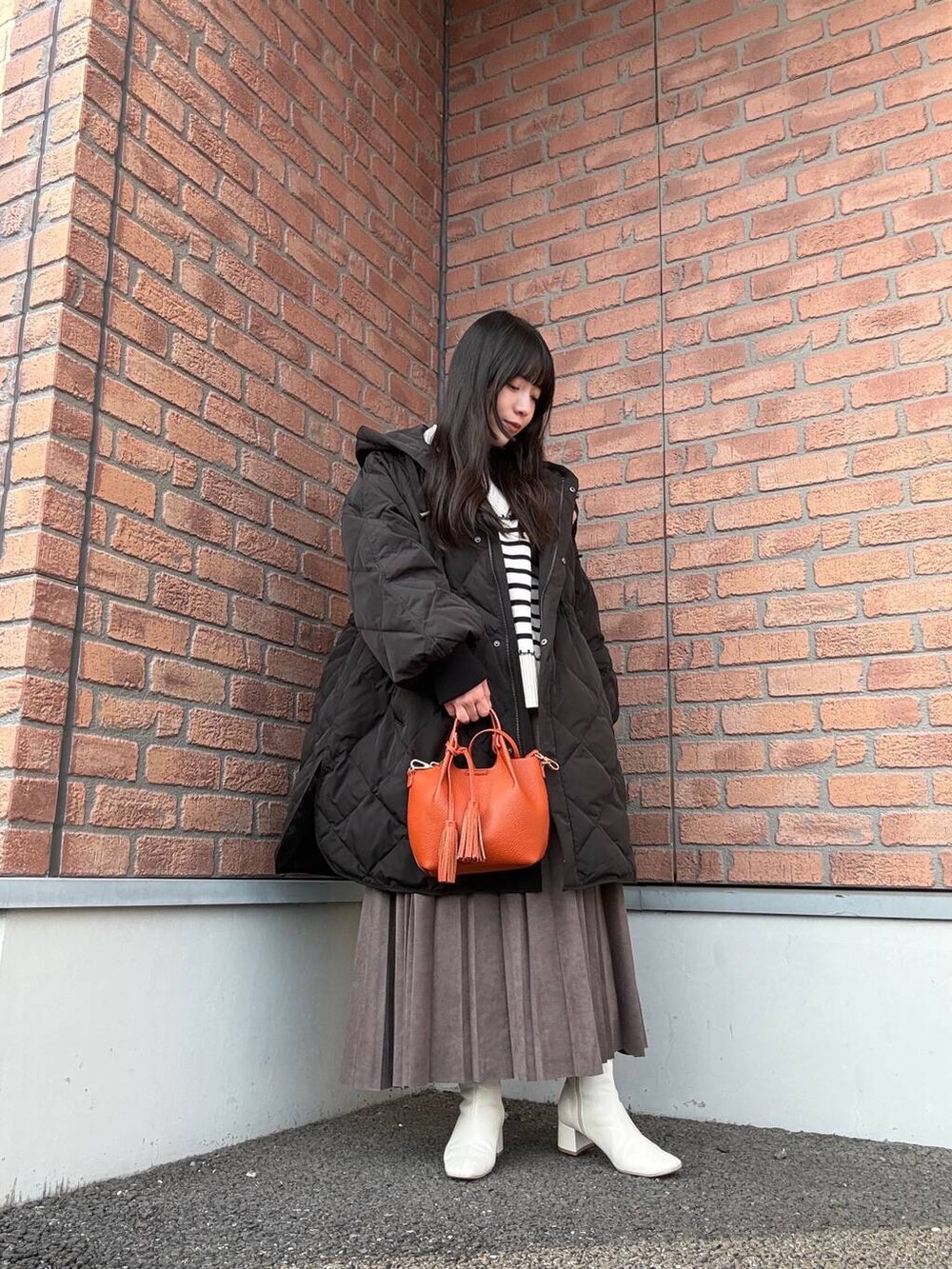 ゆったりシルエットが可愛いキルティングコートはウエスト絞って綺麗めシルエットでも着て頂けます☺️