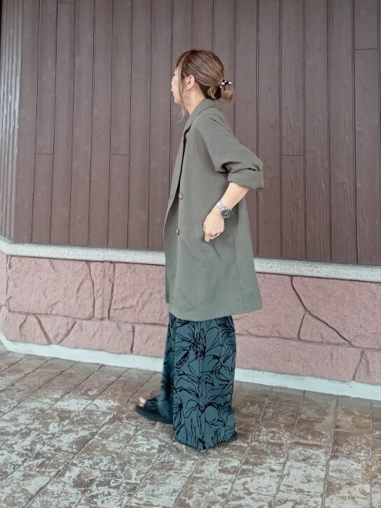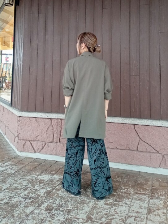 総柄のワイドパンツは少しハリのある生地でシルエットもきれいです✨