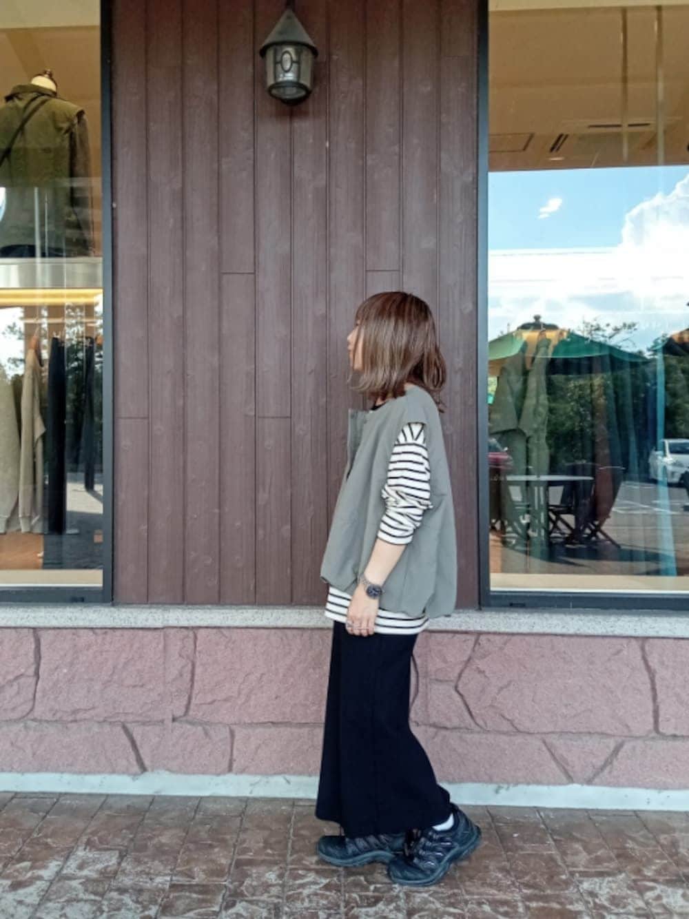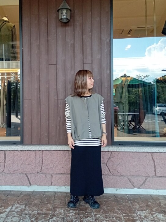 少しゆとりのあるふんわりしたデザインなのでボトムスはタイトスカートを合わせてすっきり見えるようにスタイリングしてみました。