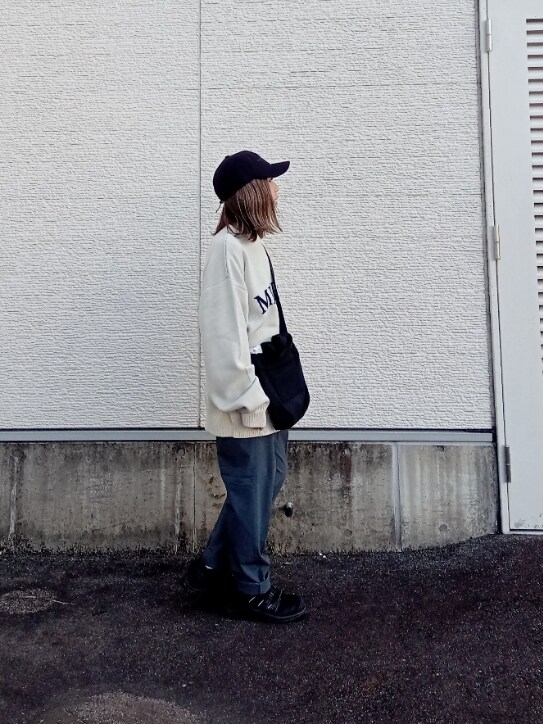テーパードパンツを合わせてメンズライクなスタイリングにしてみました。