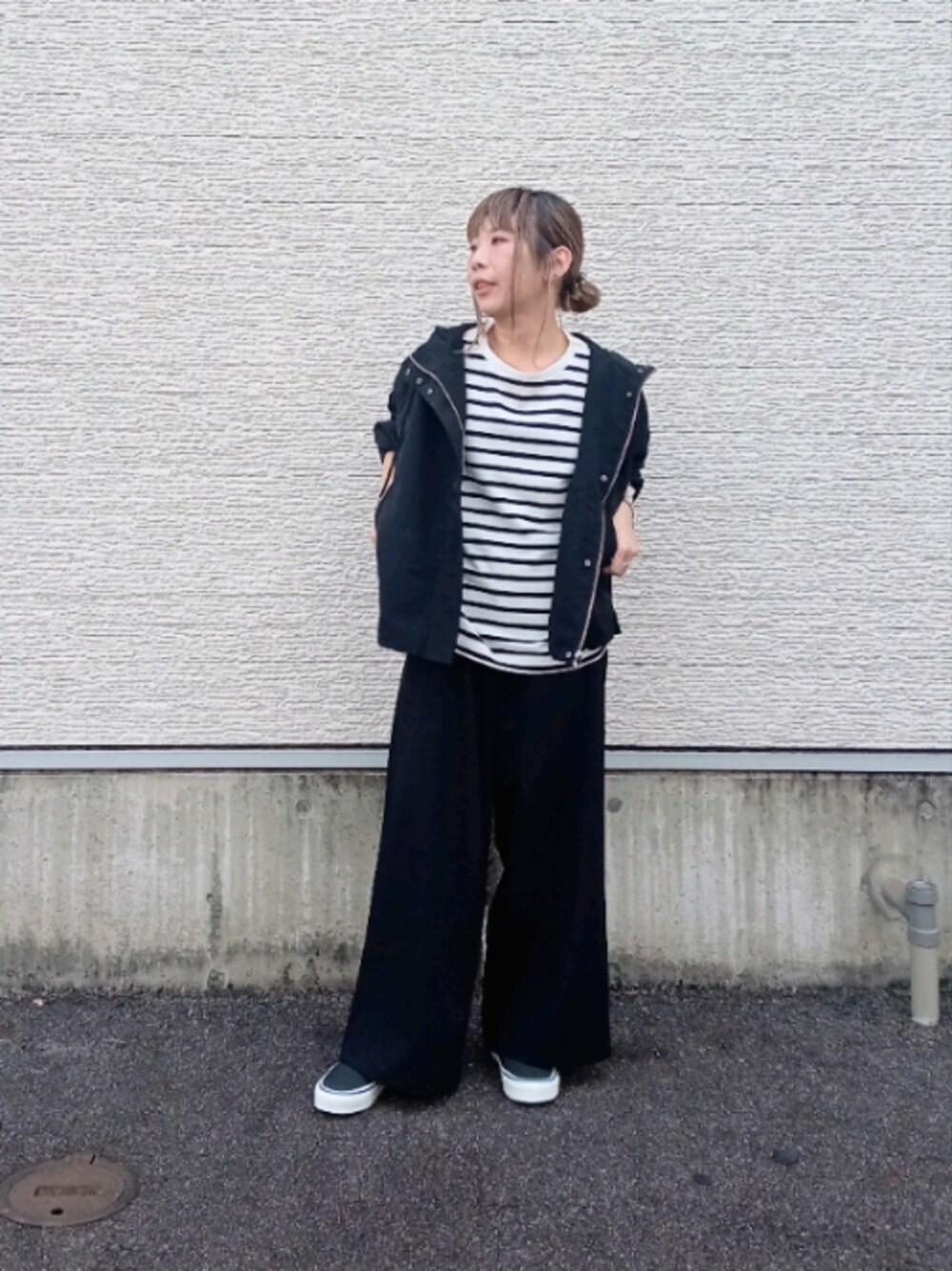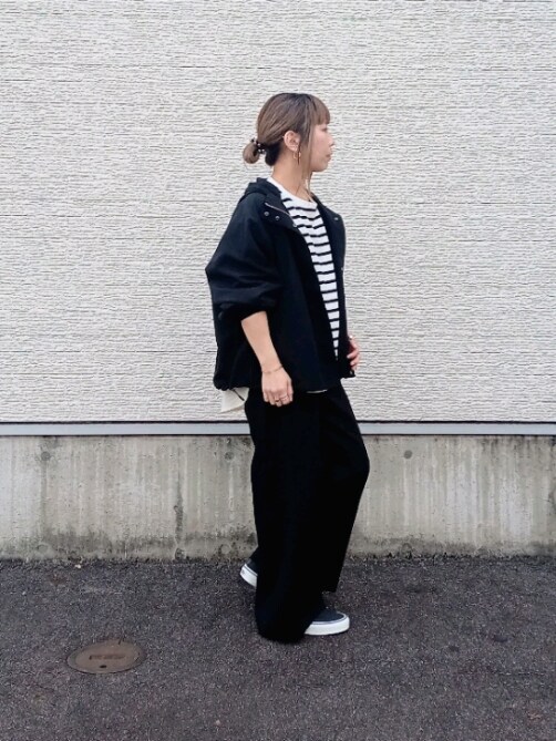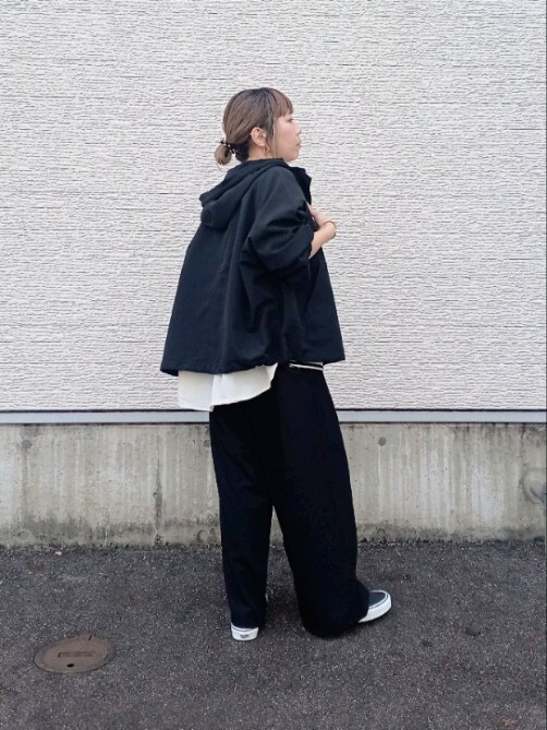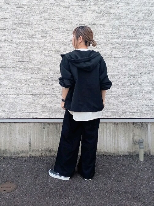 マウンテンパーカーを羽織って全身モノトーンコーデ♪