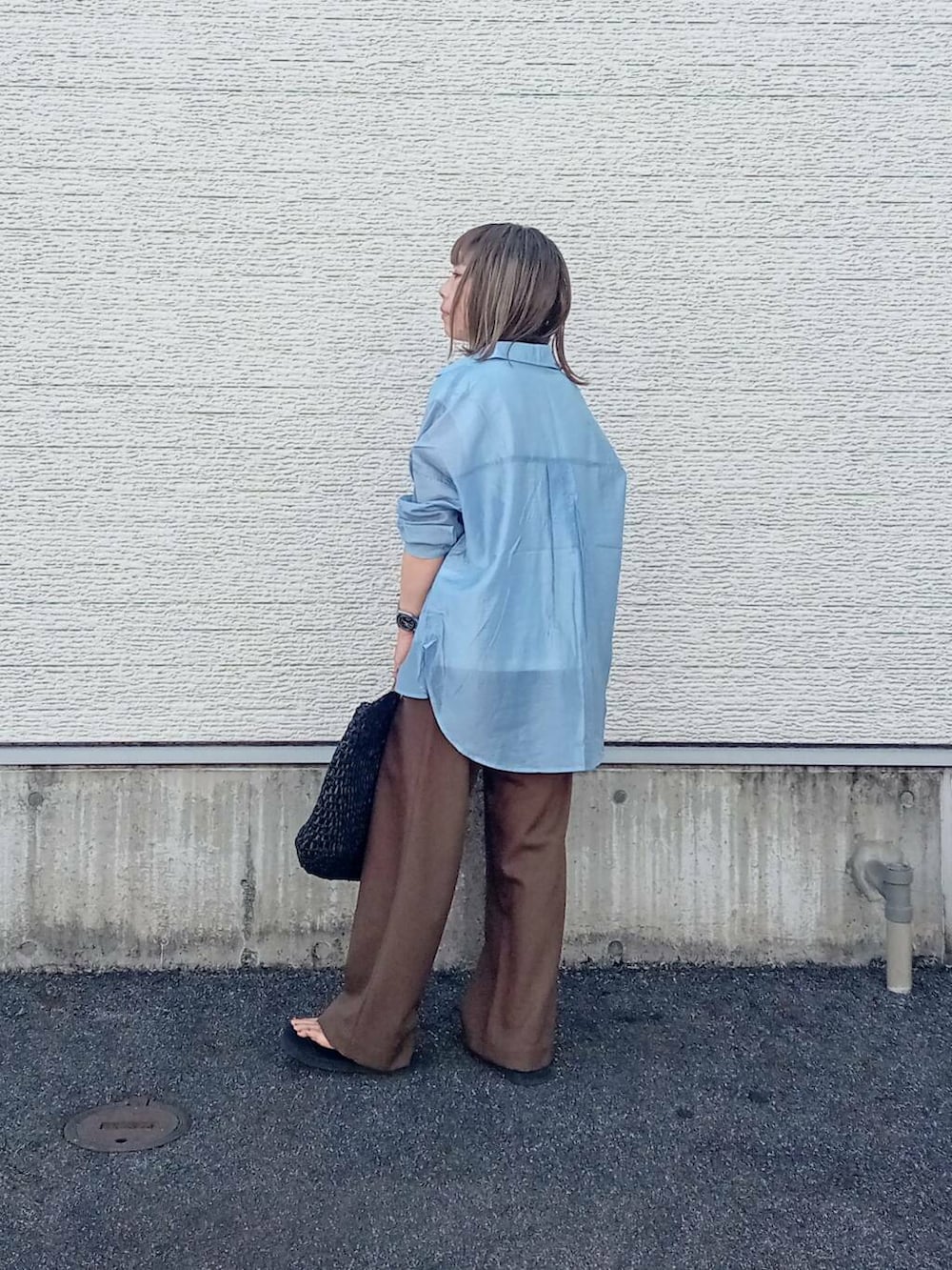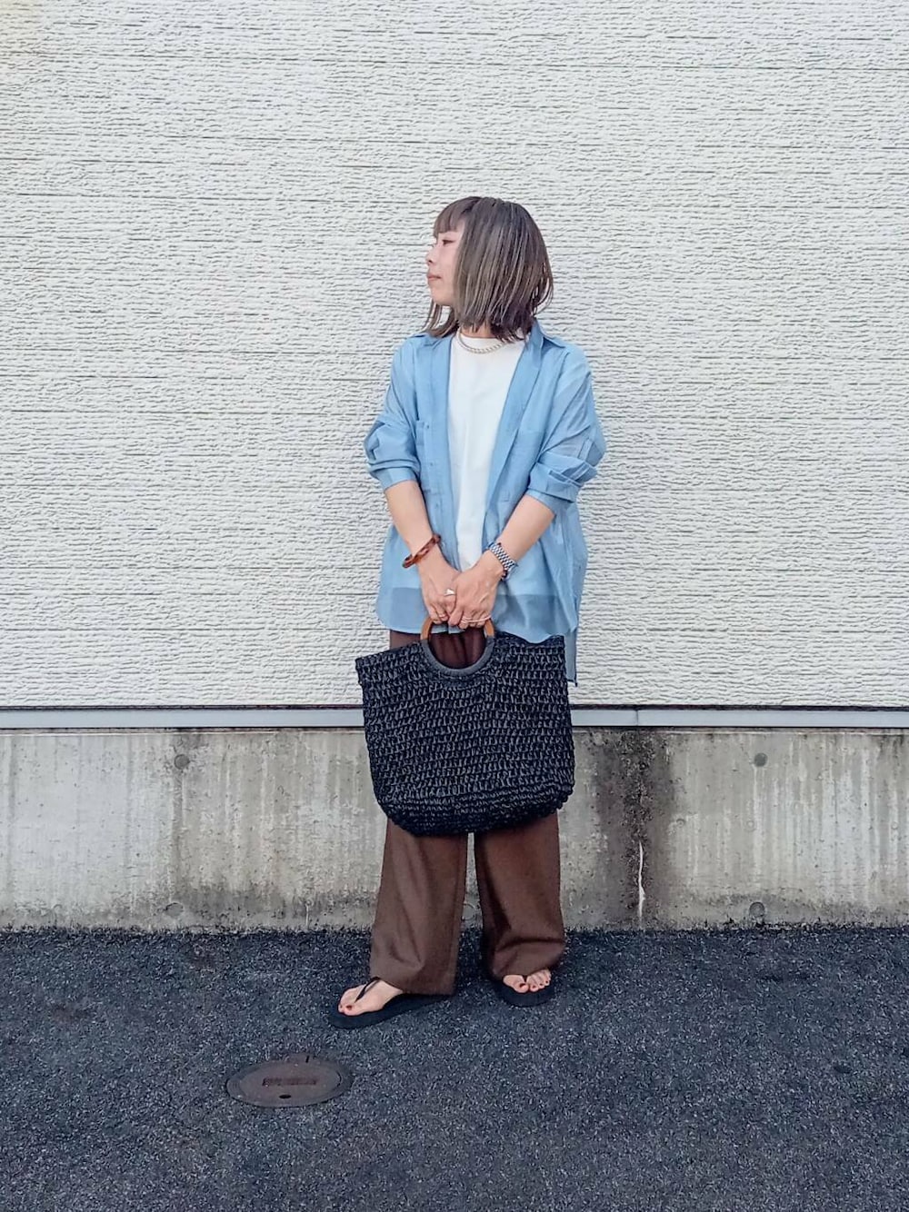 シアーシャツを合わせて涼しげなスタイリングにしてみました。