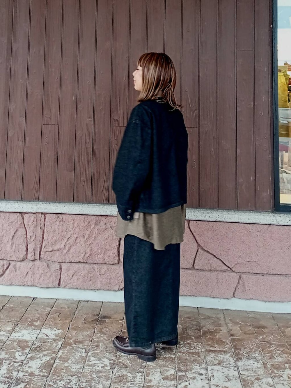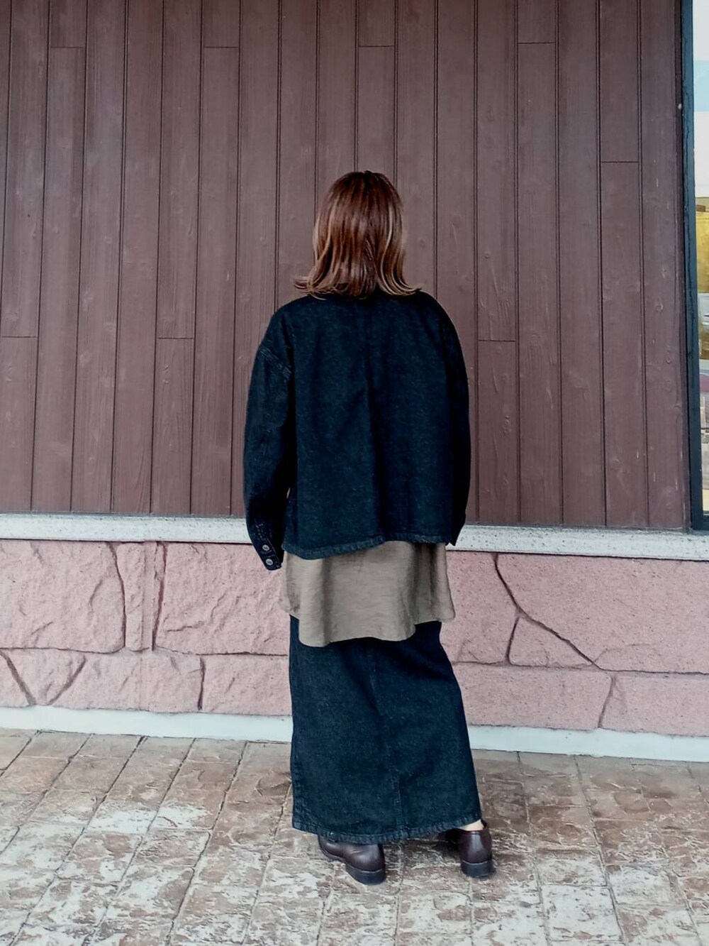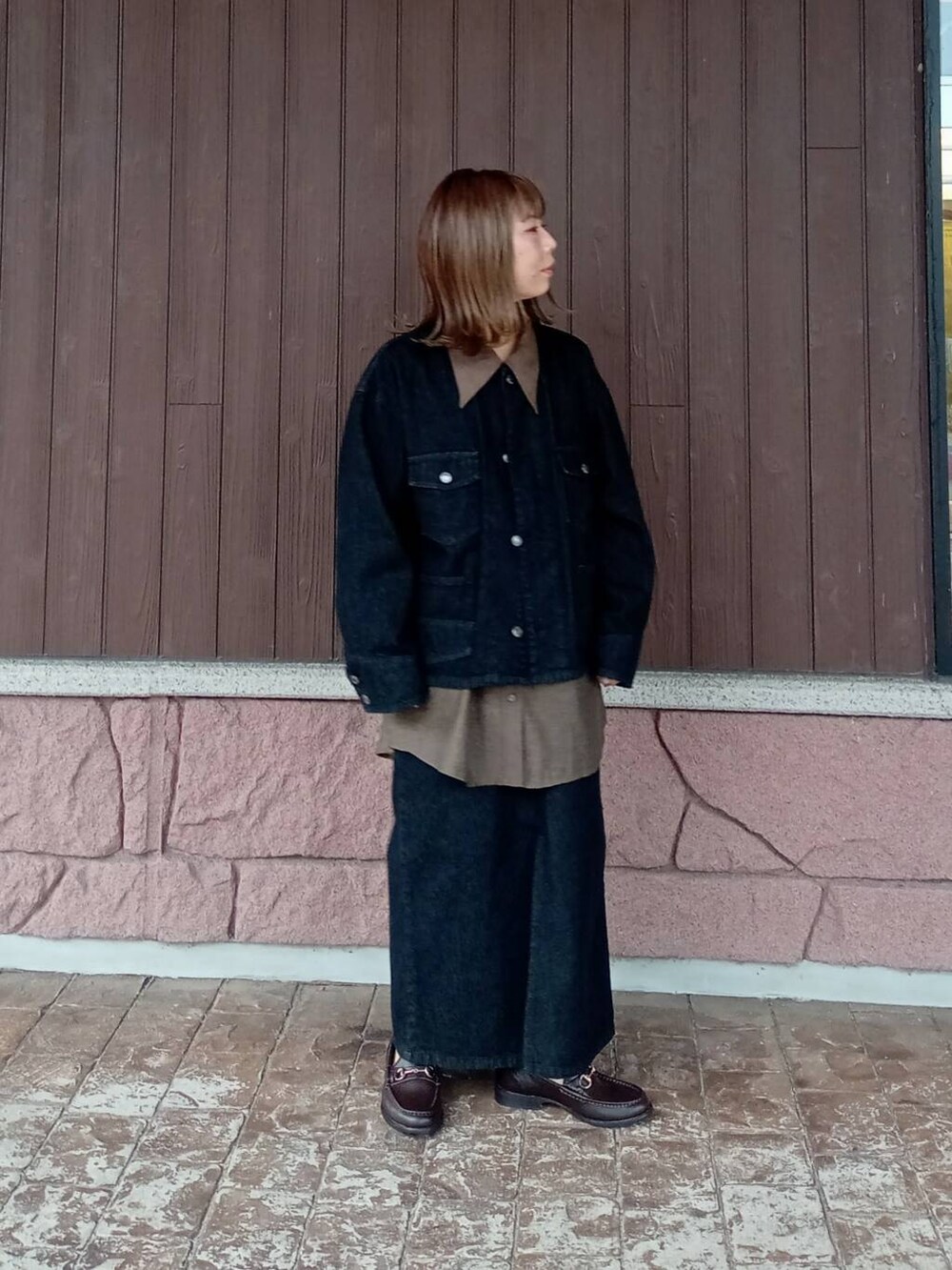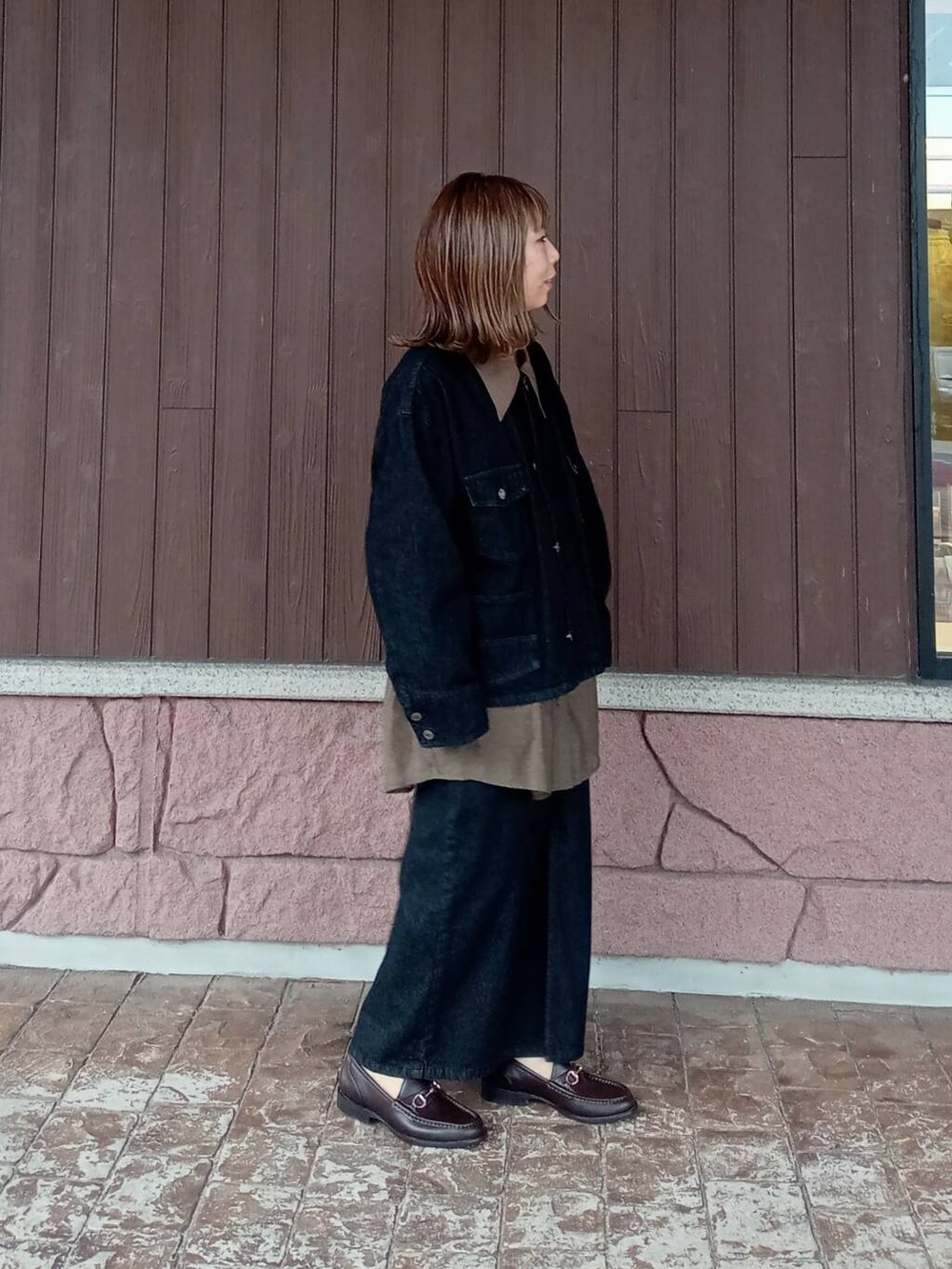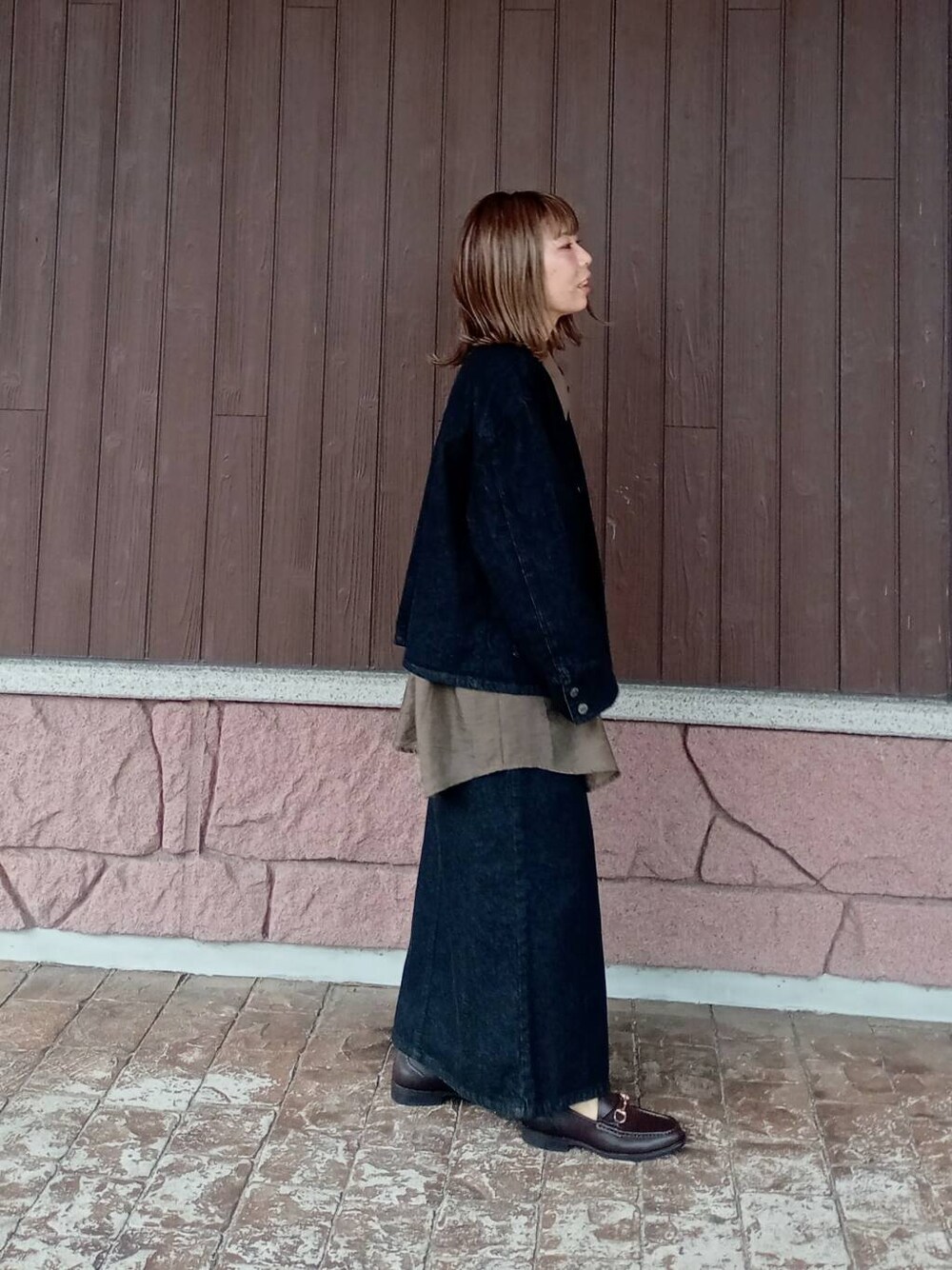 上下ともゆったりしたサイズ感なのでしっかりしたデニム生地でも動きやすく体型カバーもできて◎です。