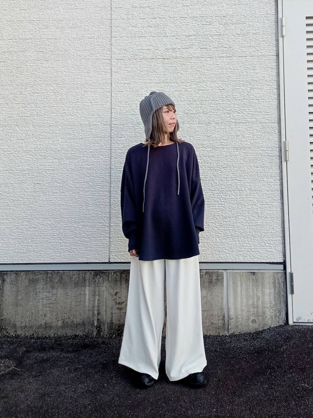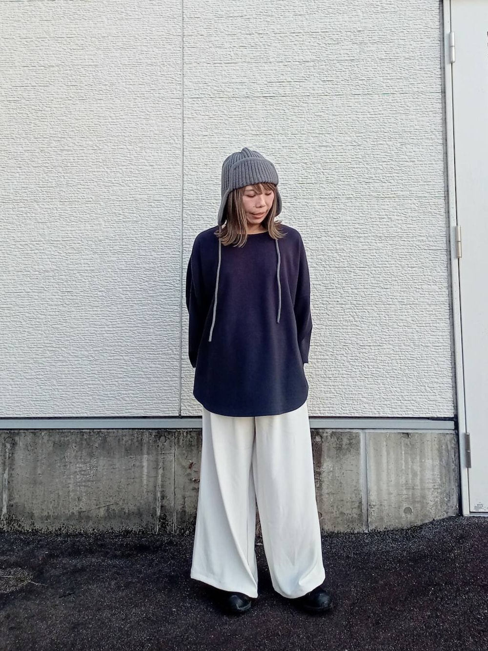 タックパンツを合わせたシンプルなスタイリングにフライトキャップを被ってスニーカーコーデで着崩してみました☺️