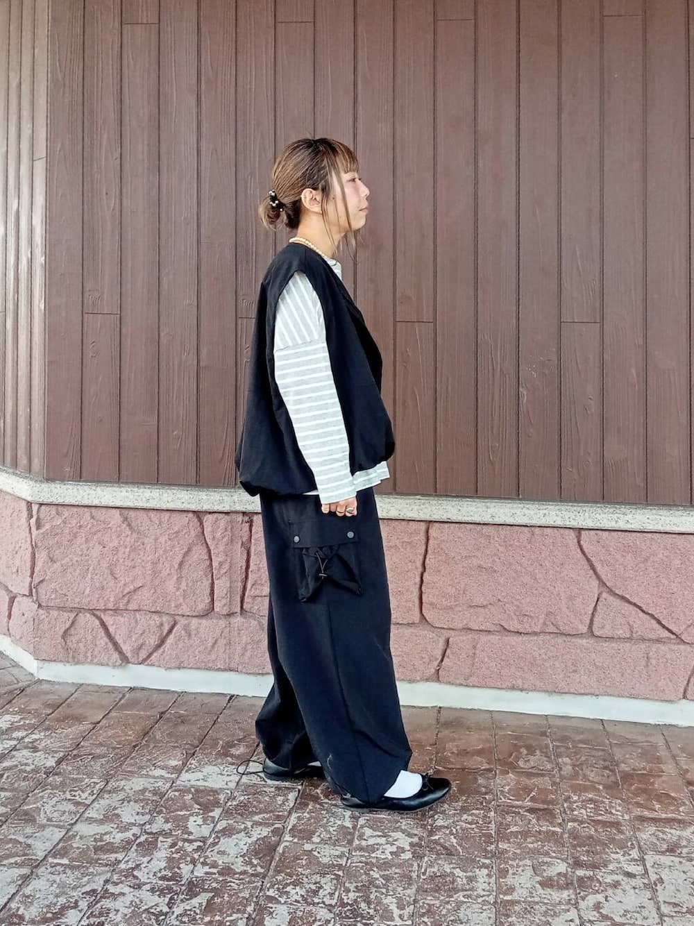 カーゴパンツは裾が絞れるので低身長でも安心して穿いていただけます◎