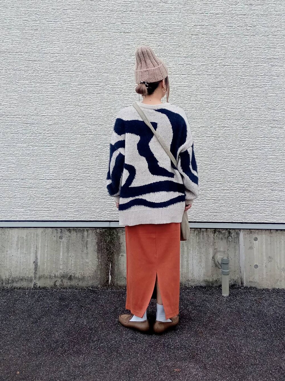 ボリュームのあるトップスなので、ボトムスはすっきりタイトなシルエットのものを合わせてみました。====================================
