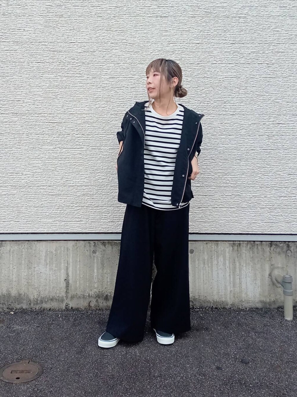 ボーダーのカットソーとイージーパンツを合わせて動きやすいコーディネートにしてみました。