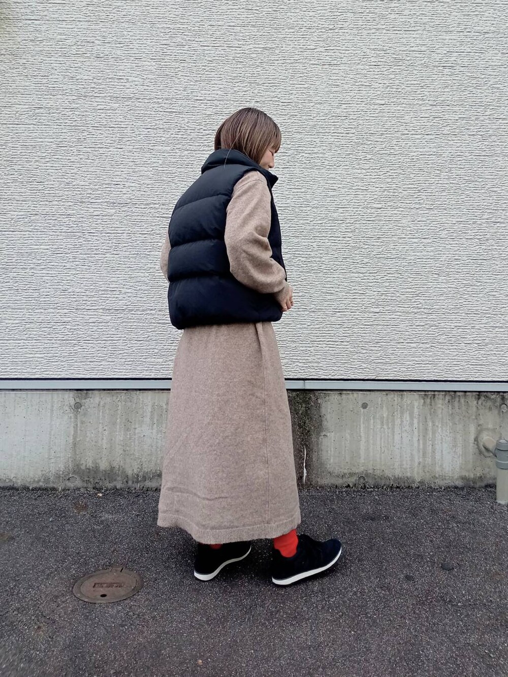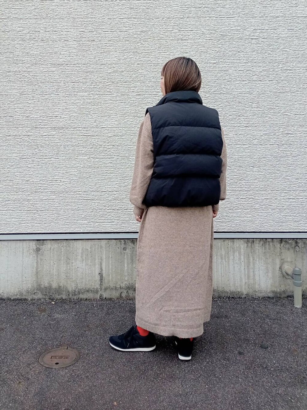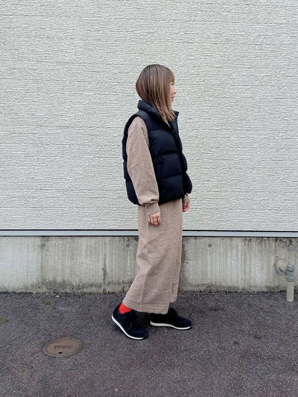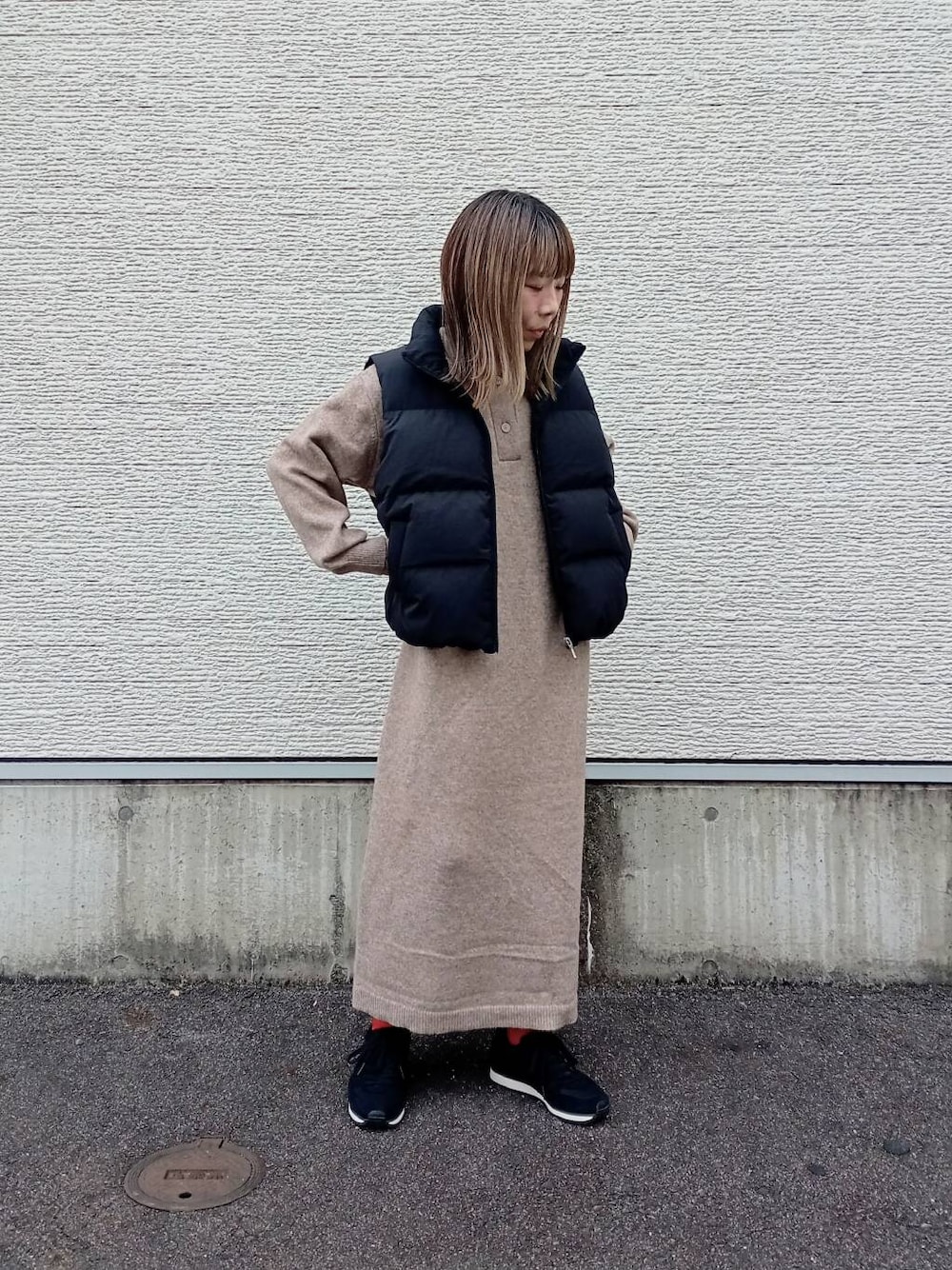 ポロニットのワンピースに合わせてシンプルコーデに。