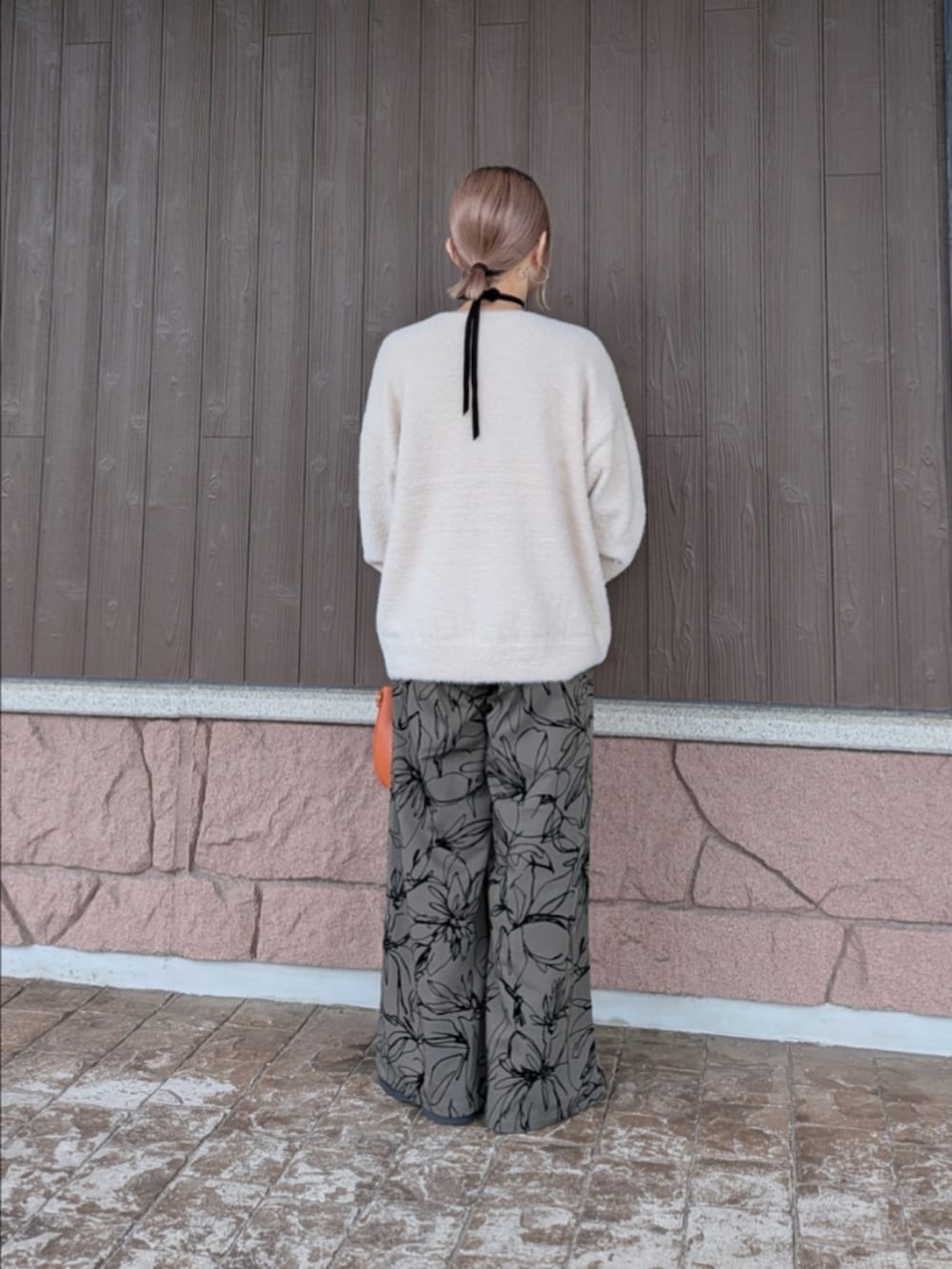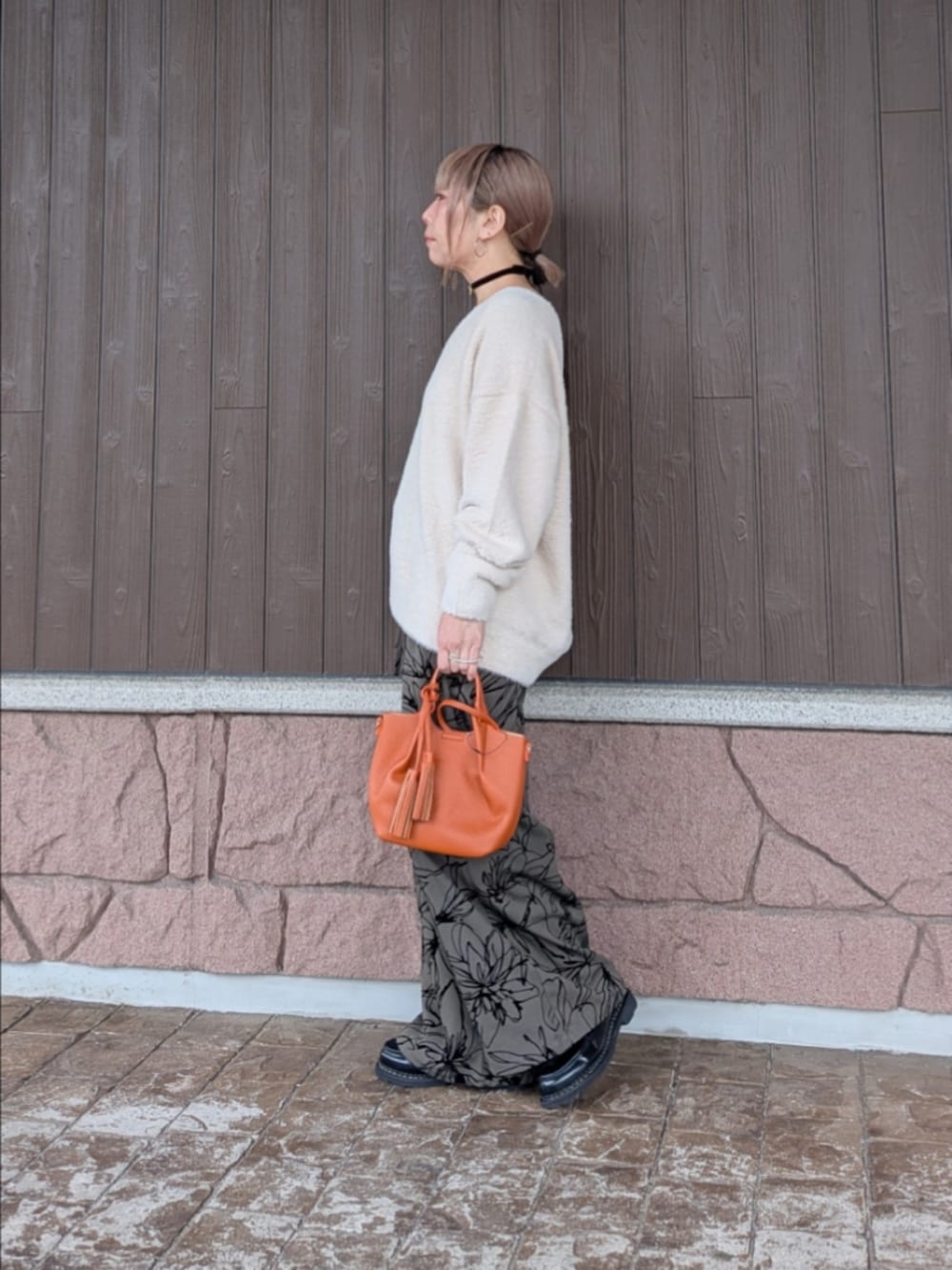 シンプルコーデに差し色バッグでポイントに🍊