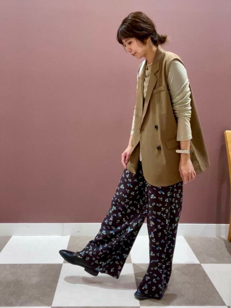 小さな花柄なので柄パンツ挑戦したことない方でも履きやすいですよ!