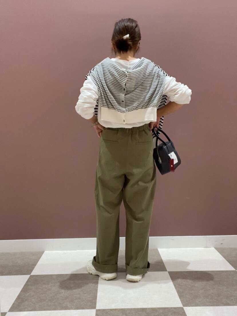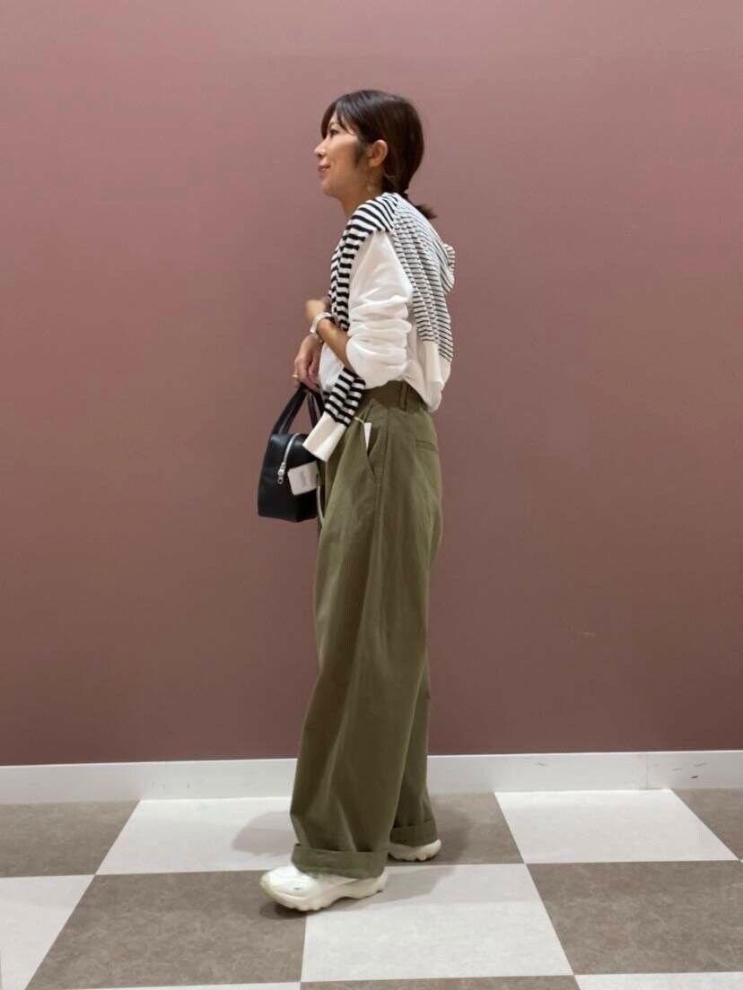 形のキレイなパンツはお店でも人気色のオリーブを履いてみました✨