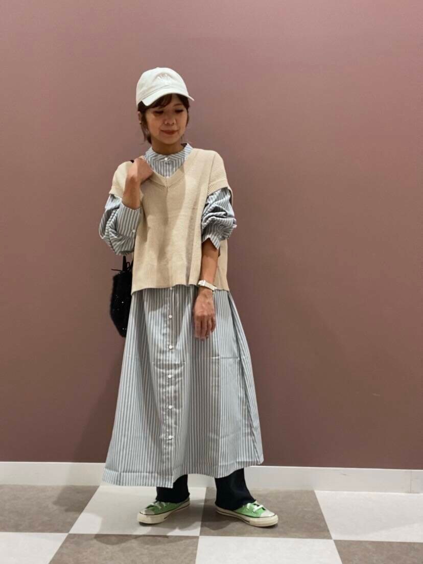 可愛いニットベストとシャツワンピースのセットアイテム✨