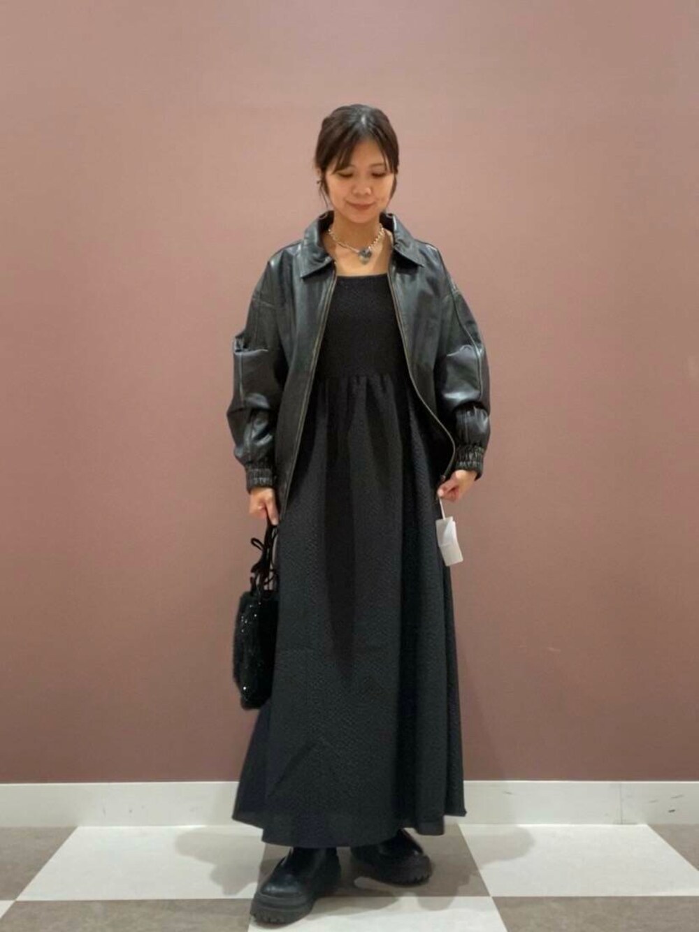 今回はワンピースとあわせて甘辛MIXコーデにしてみました♡
