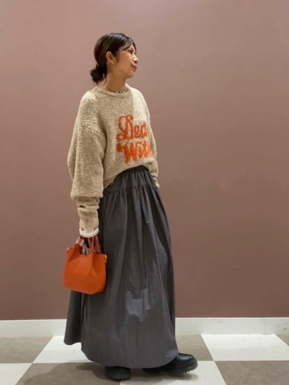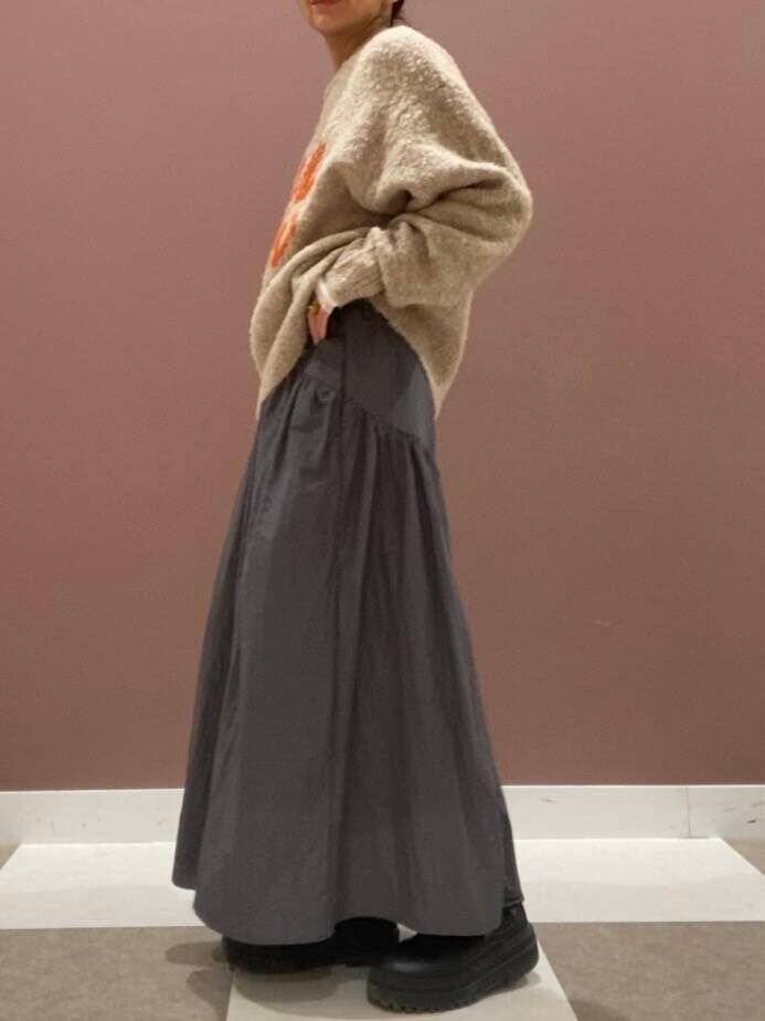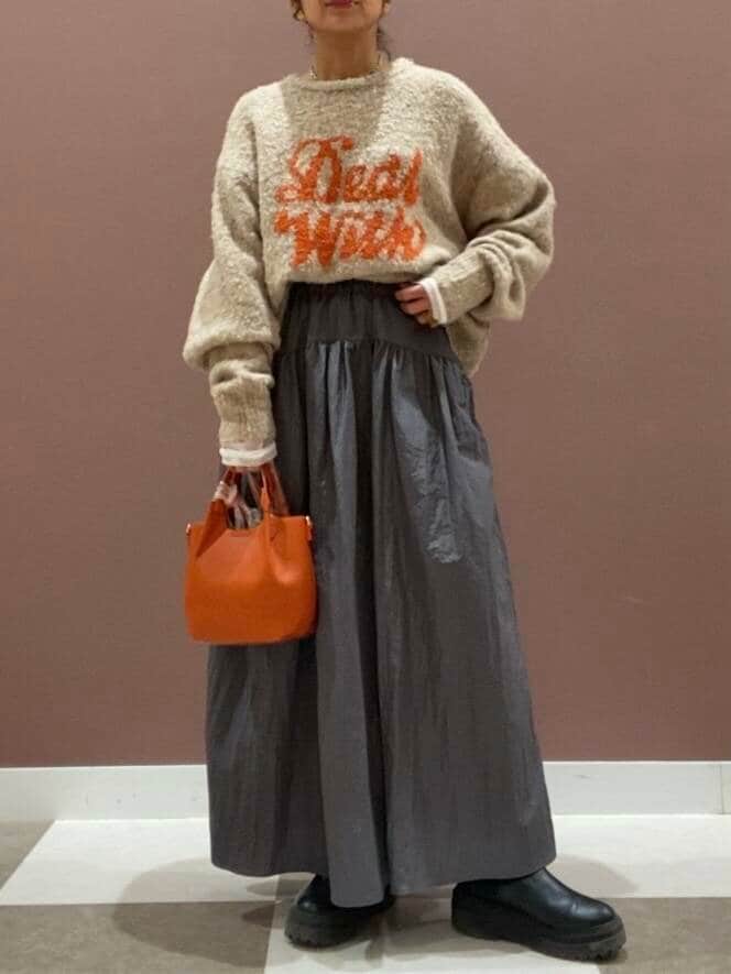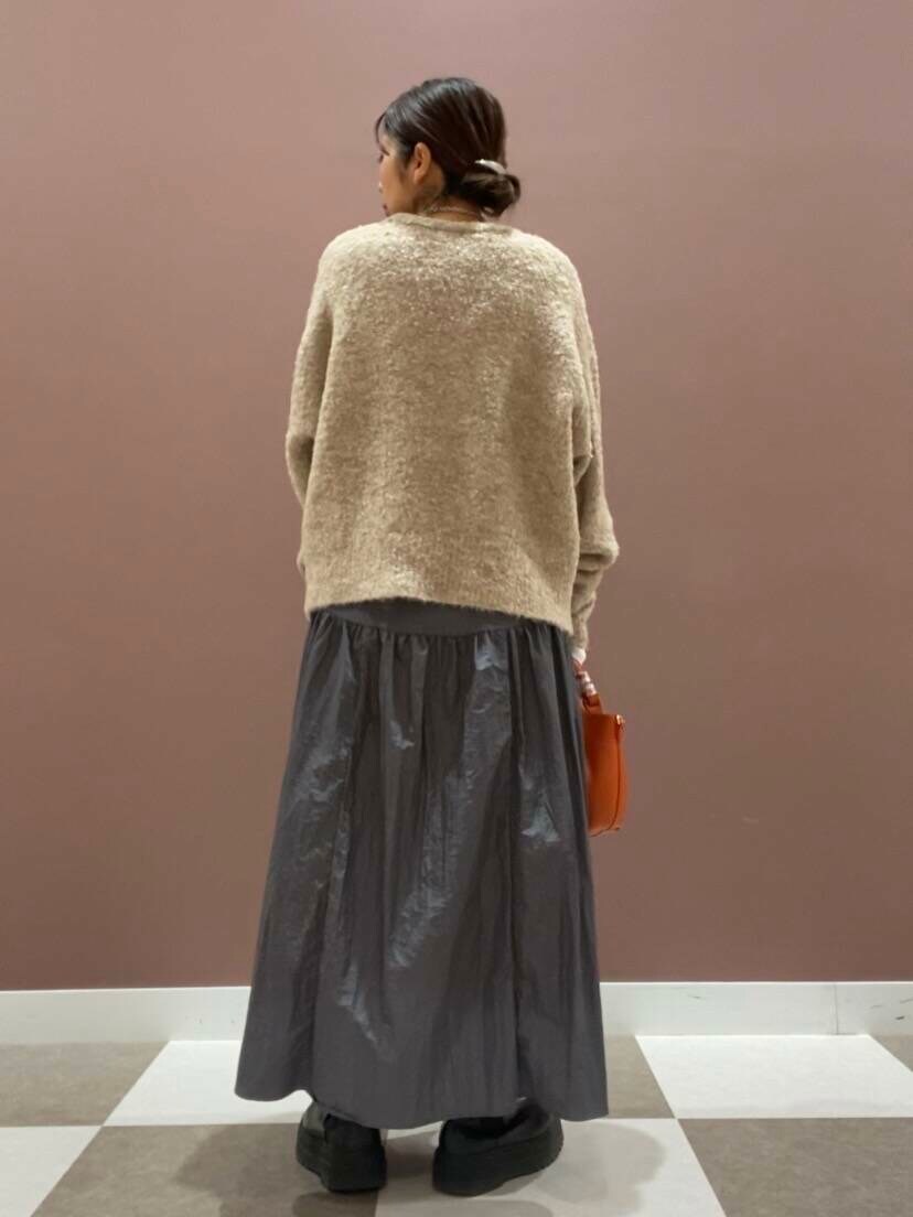 ギャザーボリュームスカートはシャカシャカ素材がコーデのポイントに◎