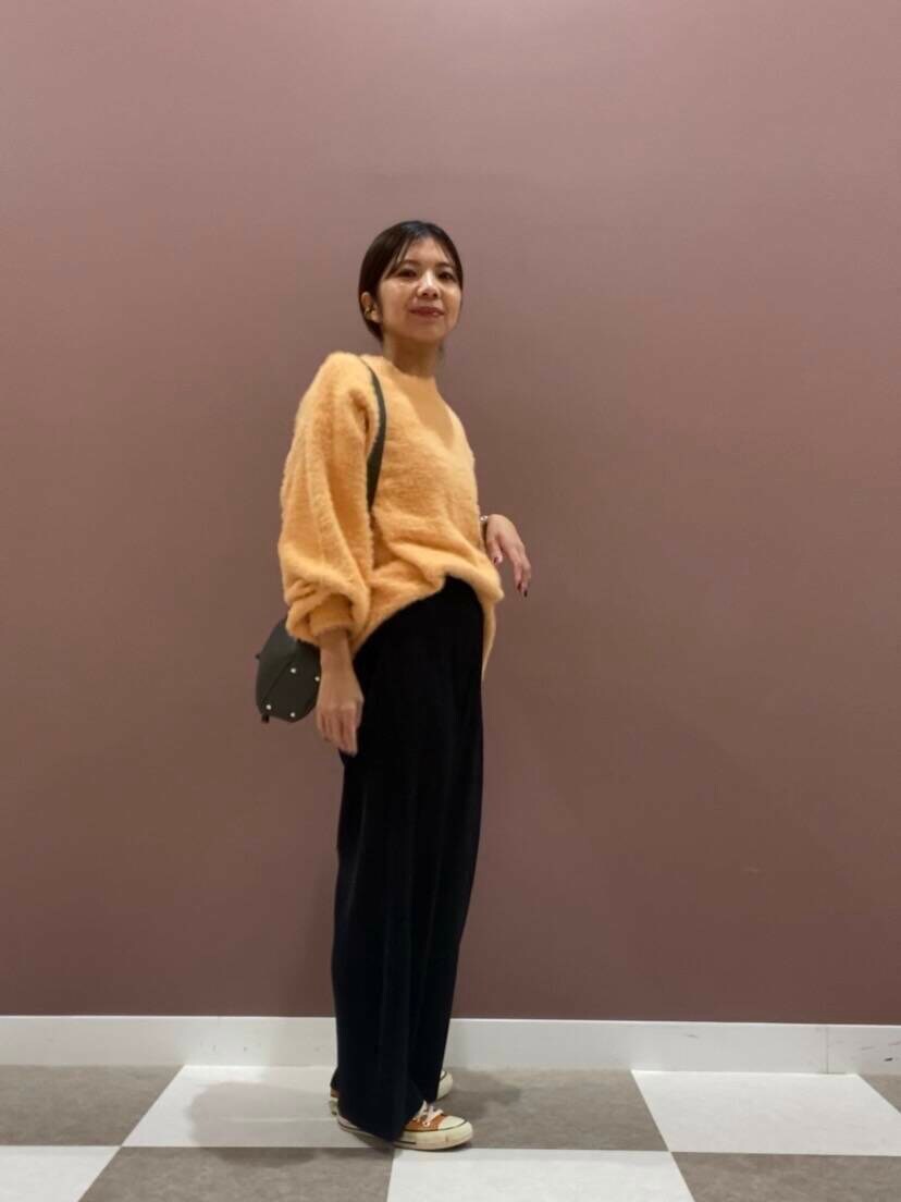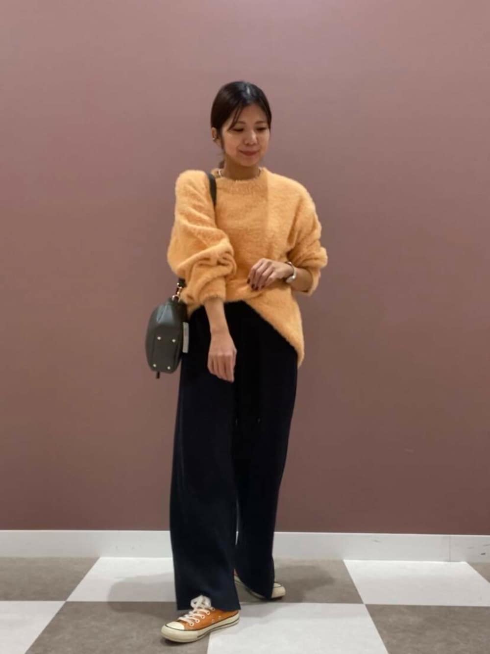 やわらかなオレンジの色合いが可愛くシンプルなコーデにしました!