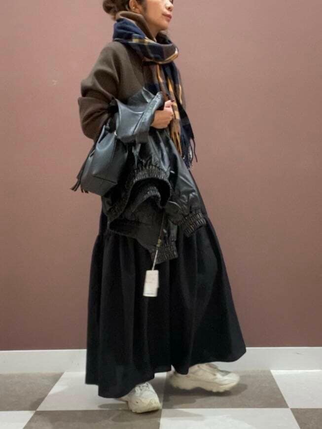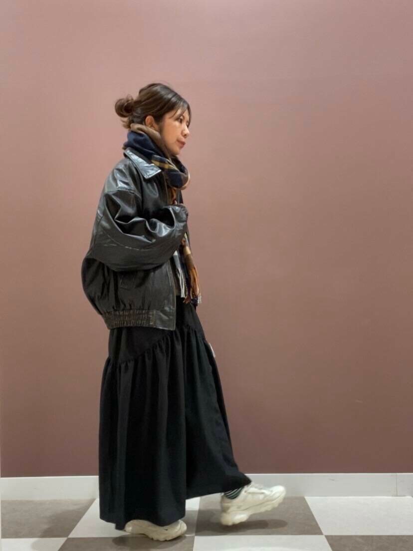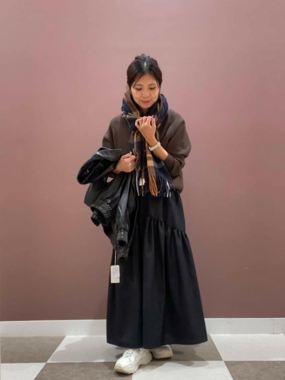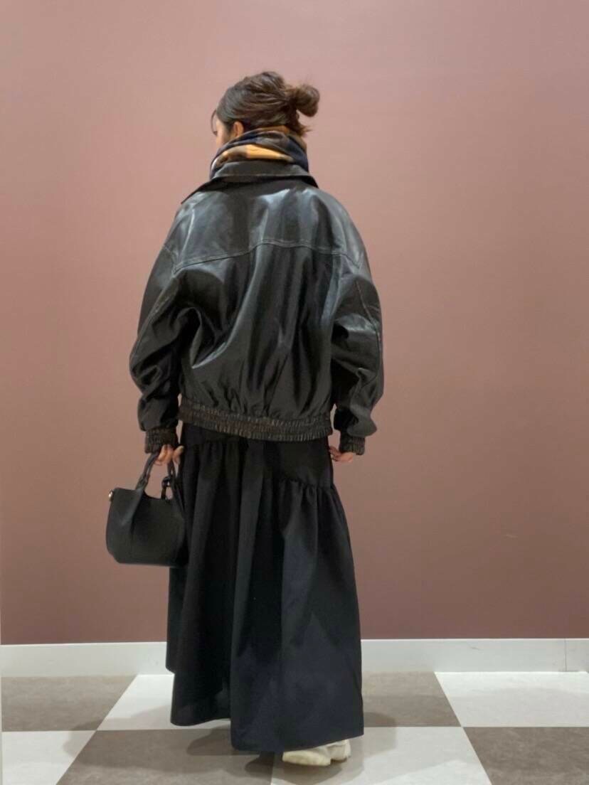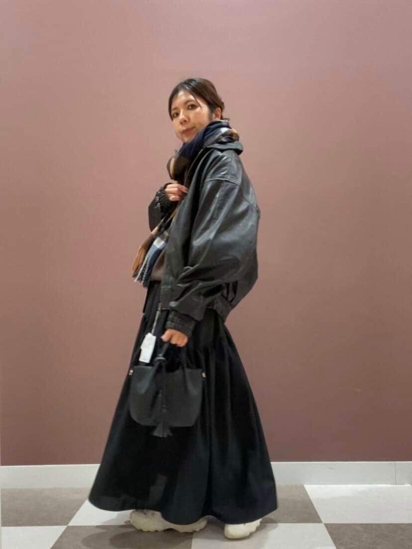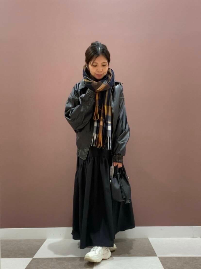 チェックストールとレザーライクジャケットで甘辛MIXコーデにしてみました✨