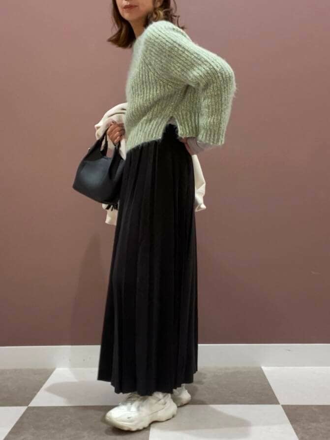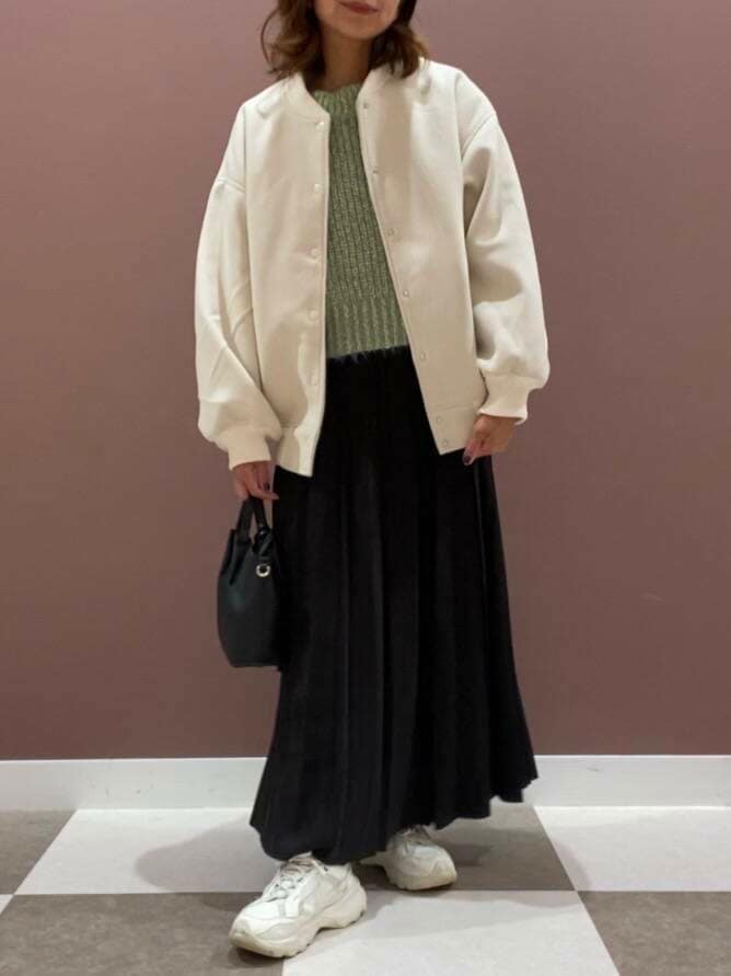 スタジャンはゆったりめなサイズなので中にボリュームニットも着込めます!