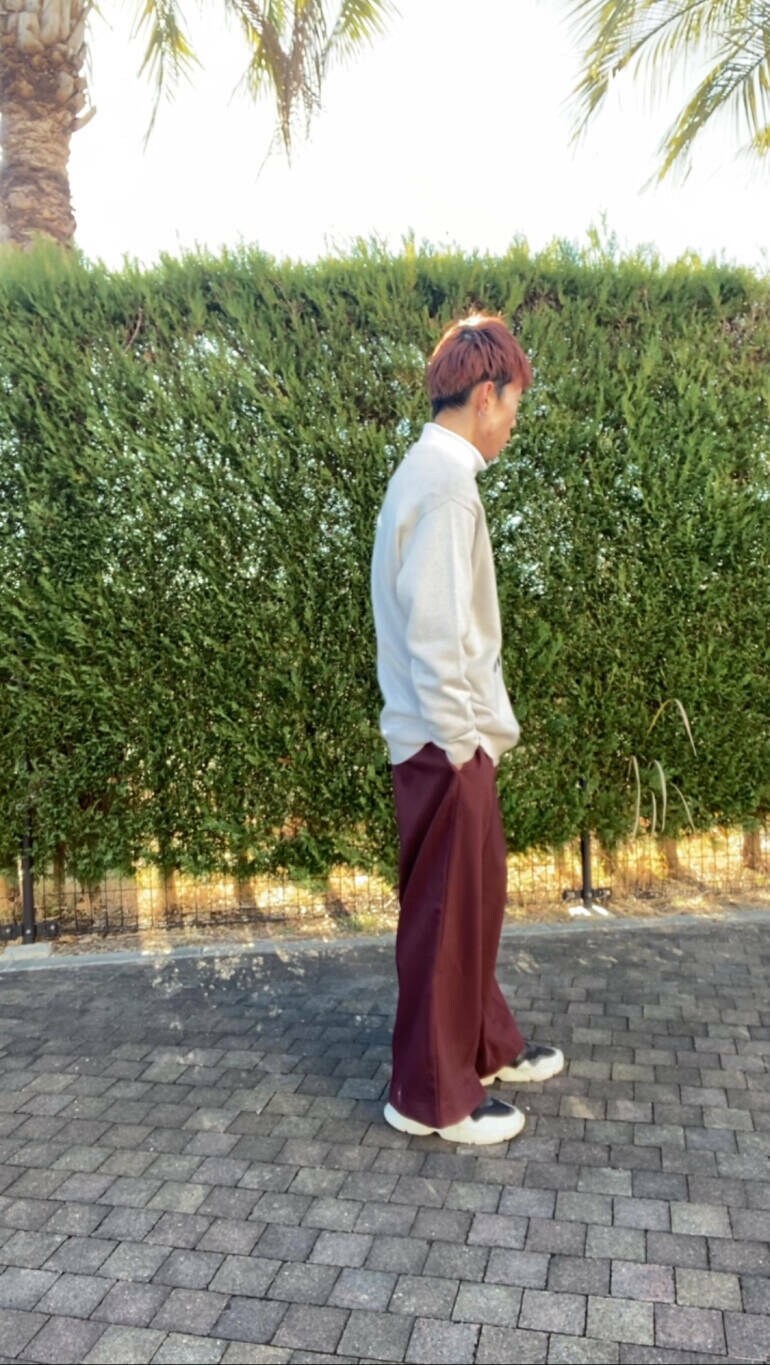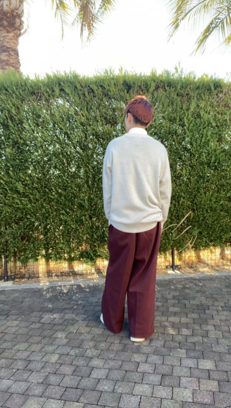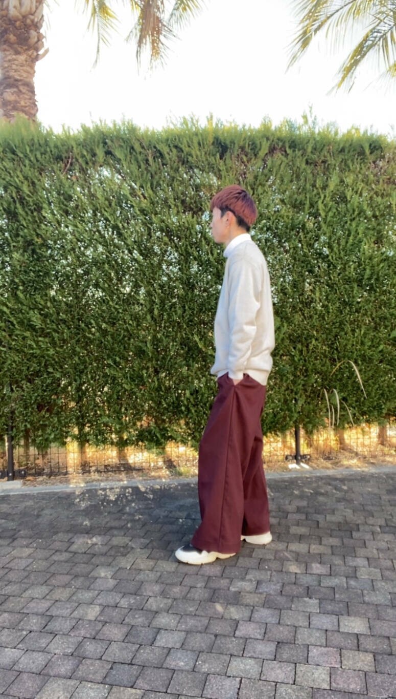 花柄ニットに赤のワイドパンツでキレイめにまとめてみました!